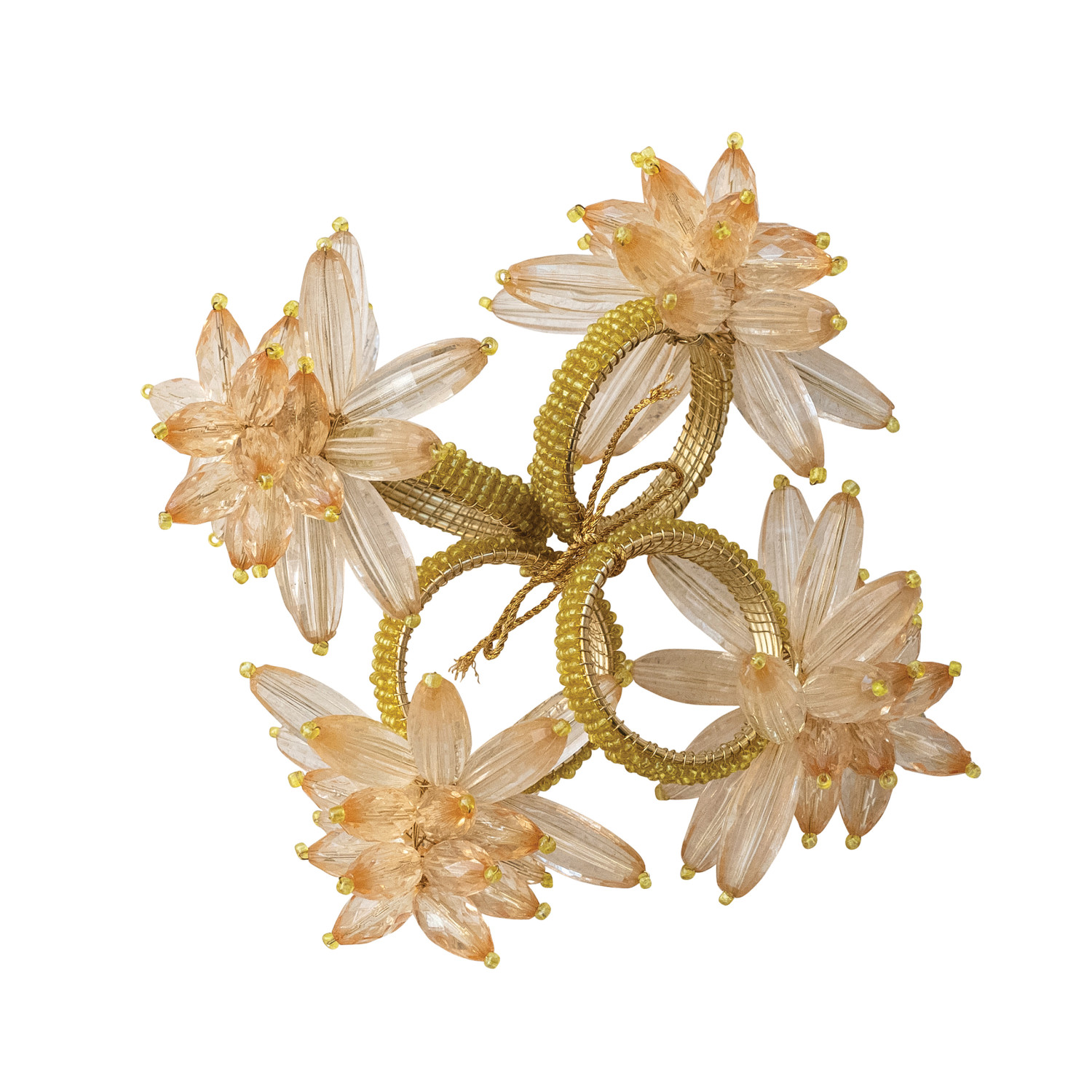 Handmade Acrylic & Glass Beaded Flower Napkin Rings, Set of 4 Tied with Gold Cord