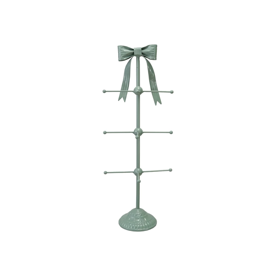 Catalog Name: 7-1/2"L x 6"W x 19"H Metal Mug Rack w/ Bow, Eucalyptus Color (Holds 9 Mugs)