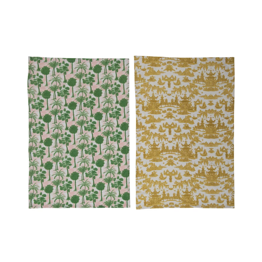 Cotton Printed Tea Towels with Pattern, 2 Colors, 2 Styles