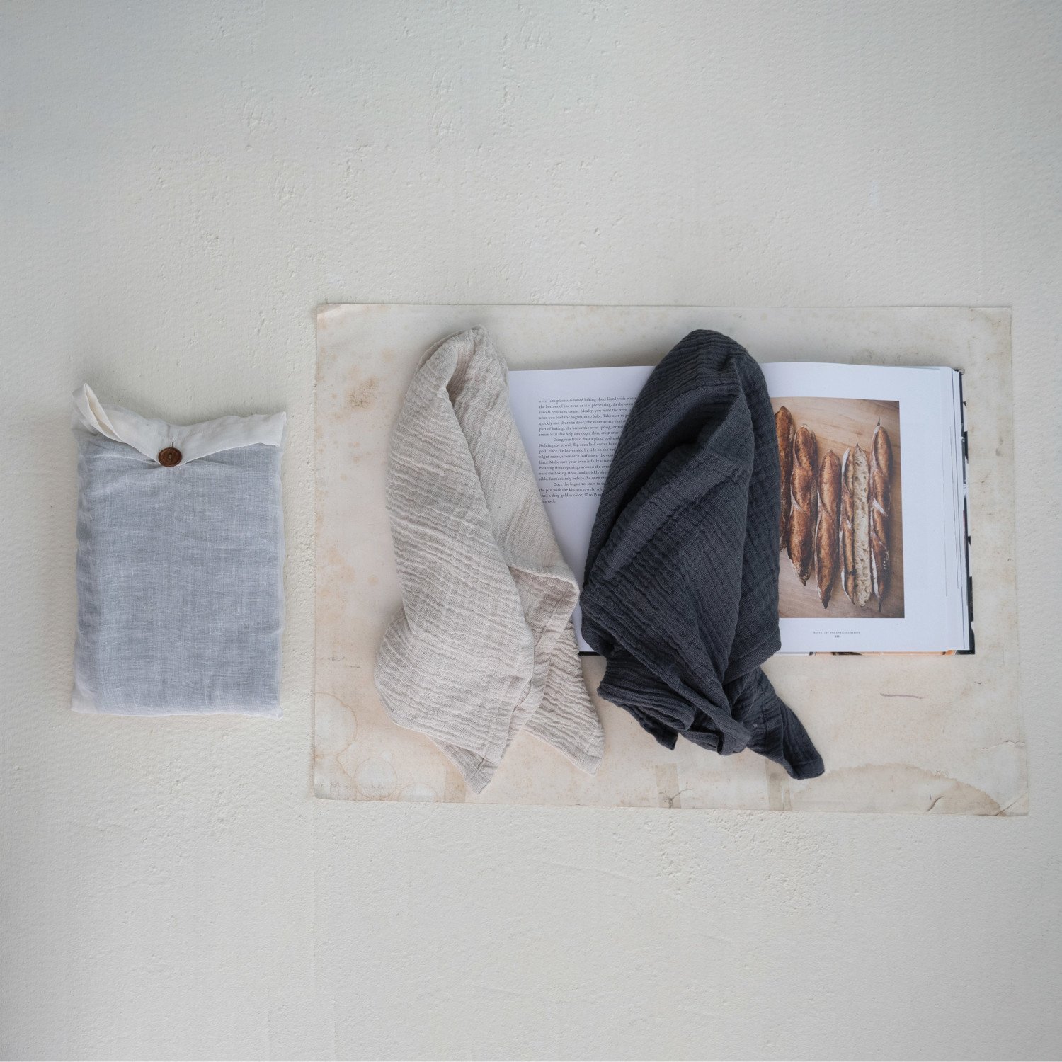 Catalog Name: 28"L x 18"W Cotton Double Cloth Tea Towels, Natural & Charcoal Color, Set of 2 in Cotton Bag