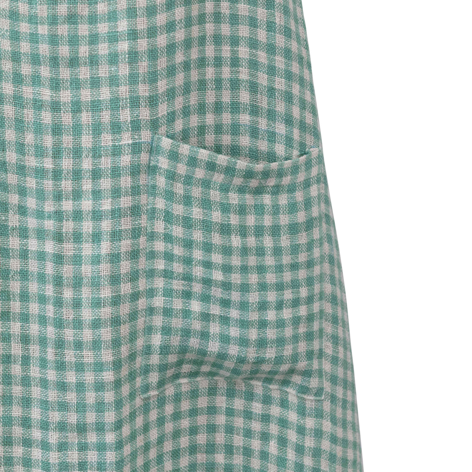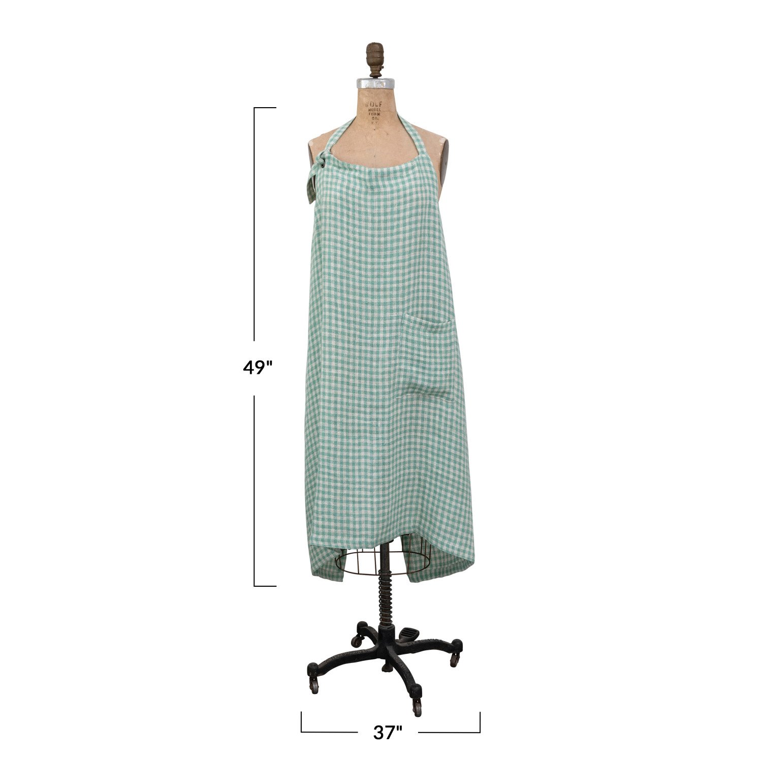 Catalog Name: 49"L x 37"H Woven Linen & Cotton Apron w/ Gingham Pattern, Aqua