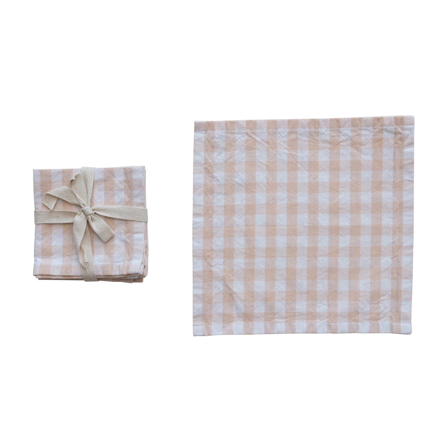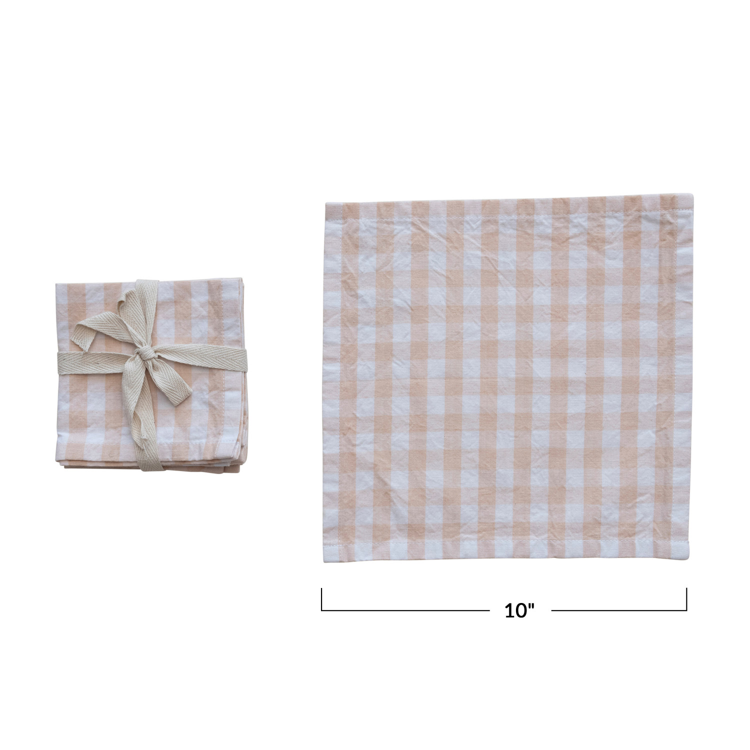 Catalog Name: 10" Square Cotton Cocktail Napkins w/ Gingham Pattern, Blush Color, Set of 4 Tied w/ Cotton Tape