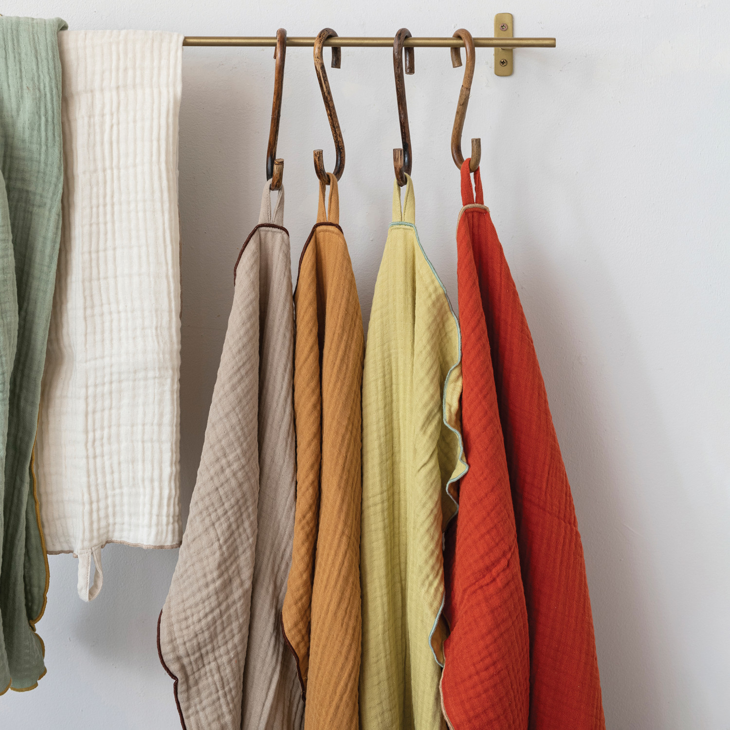 Featuring a vast selection of lush woven textures, intricate details, and timeless patterns, our collection of kitchen textiles will bring warmth and elegance to a dining space of any style. Instantly transform a breakfast nook or dining room into a sophisticated sanctuary by exploring a vast array of textiles and accessories fit for any space including table runners, napkin sets, placemats, napkin rings, tea towels, dish cloths, sponge cloths, pot holders, food pouches, aprons, and so much more. Choose from a wide variety of luxurious fabrics from cotton and velvet to linen and seagrass, and styles from mid-century modern and boho to classic farmhouse and contemporary. This playful set of woven cotton double cloth tea towels features 6 bold hues with contrasting stitched edges and hanging loops. Display in a living or dining space of any style from farmhouse to cottage. Machine Wash Warm, Gentle Cycle, Do Not Bleach, Tumble Dry Low, Warm Iron If Needed. Made from cotton.