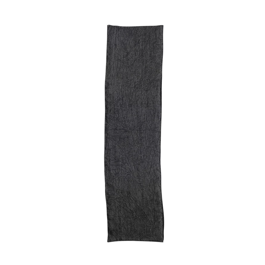 Catalog Name: 108"L x 14"W Stonewashed Linen Table Runner, Charcoal Color
