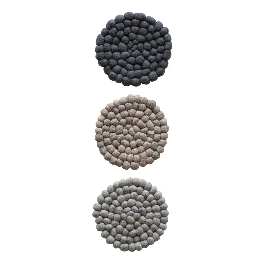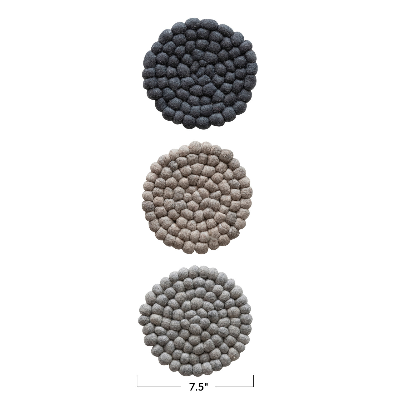 Handmade Wool Felt Ball Trivet, 3 Colors