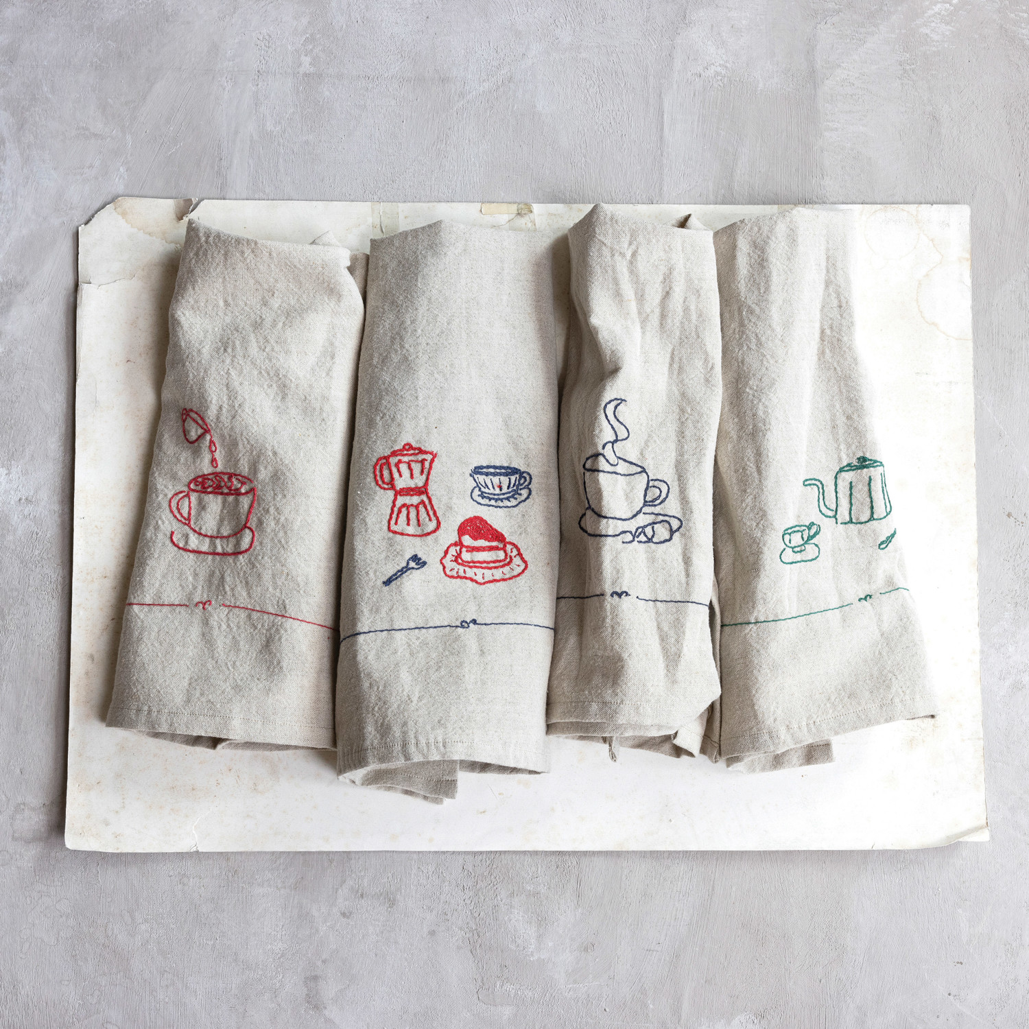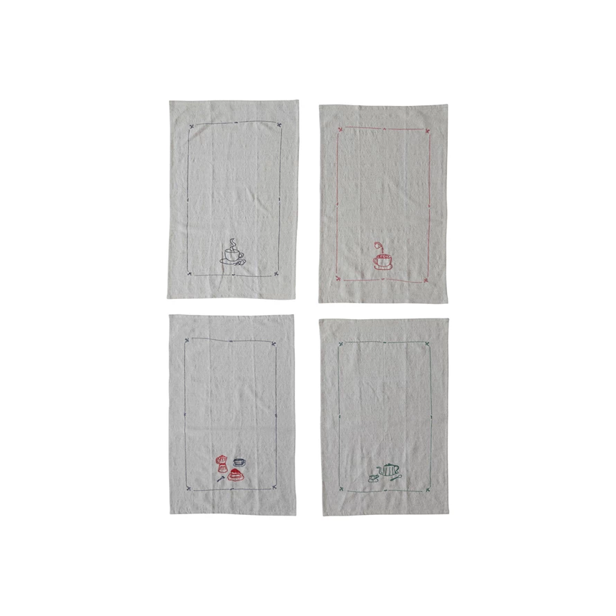 Catalog Name: 28"L x 18"W Woven Linen & Cotton Blend Tea Towel w/ Embroidered Coffee/Tea, 4 Styles