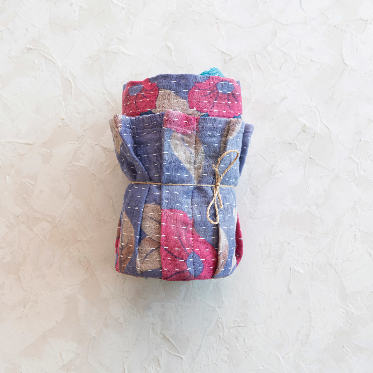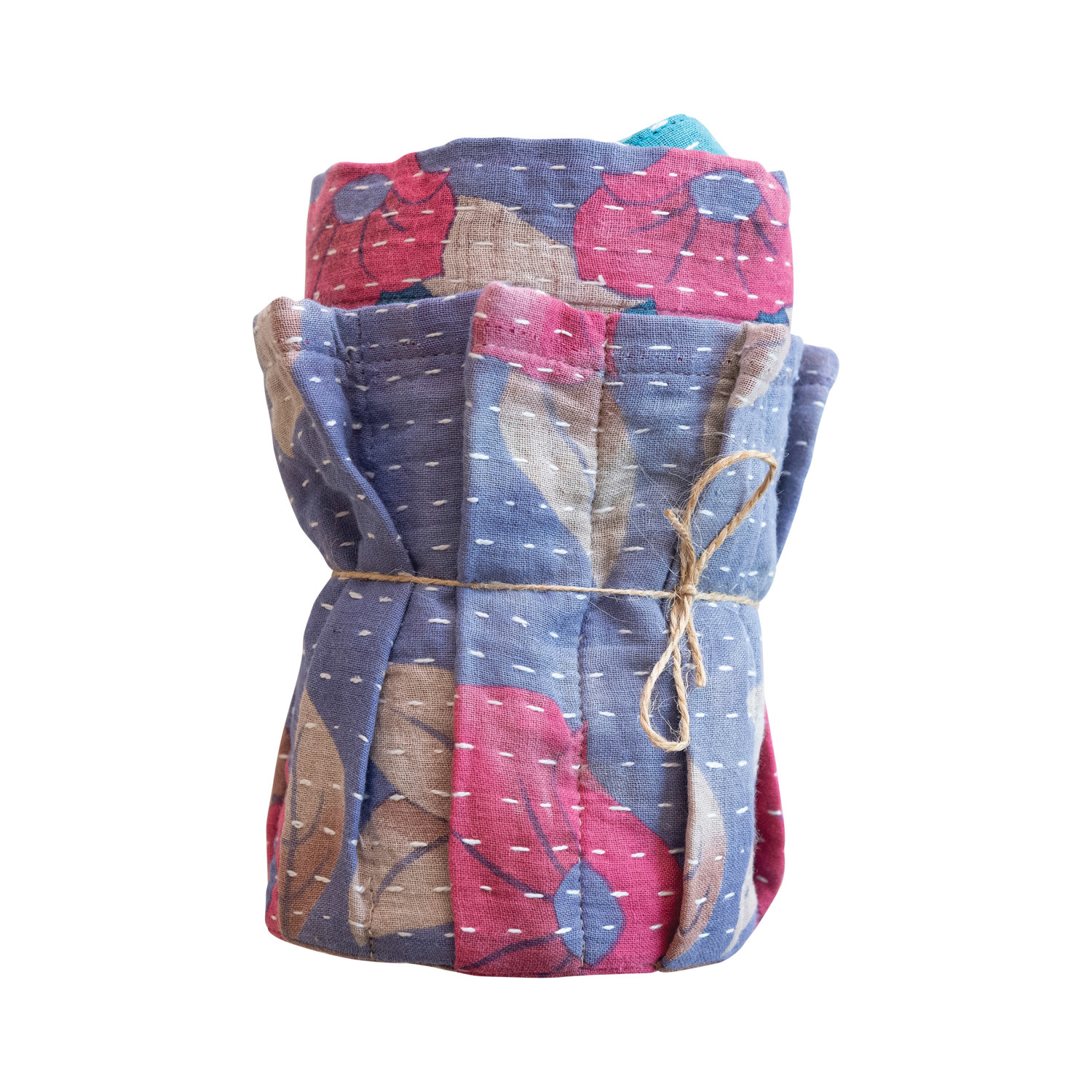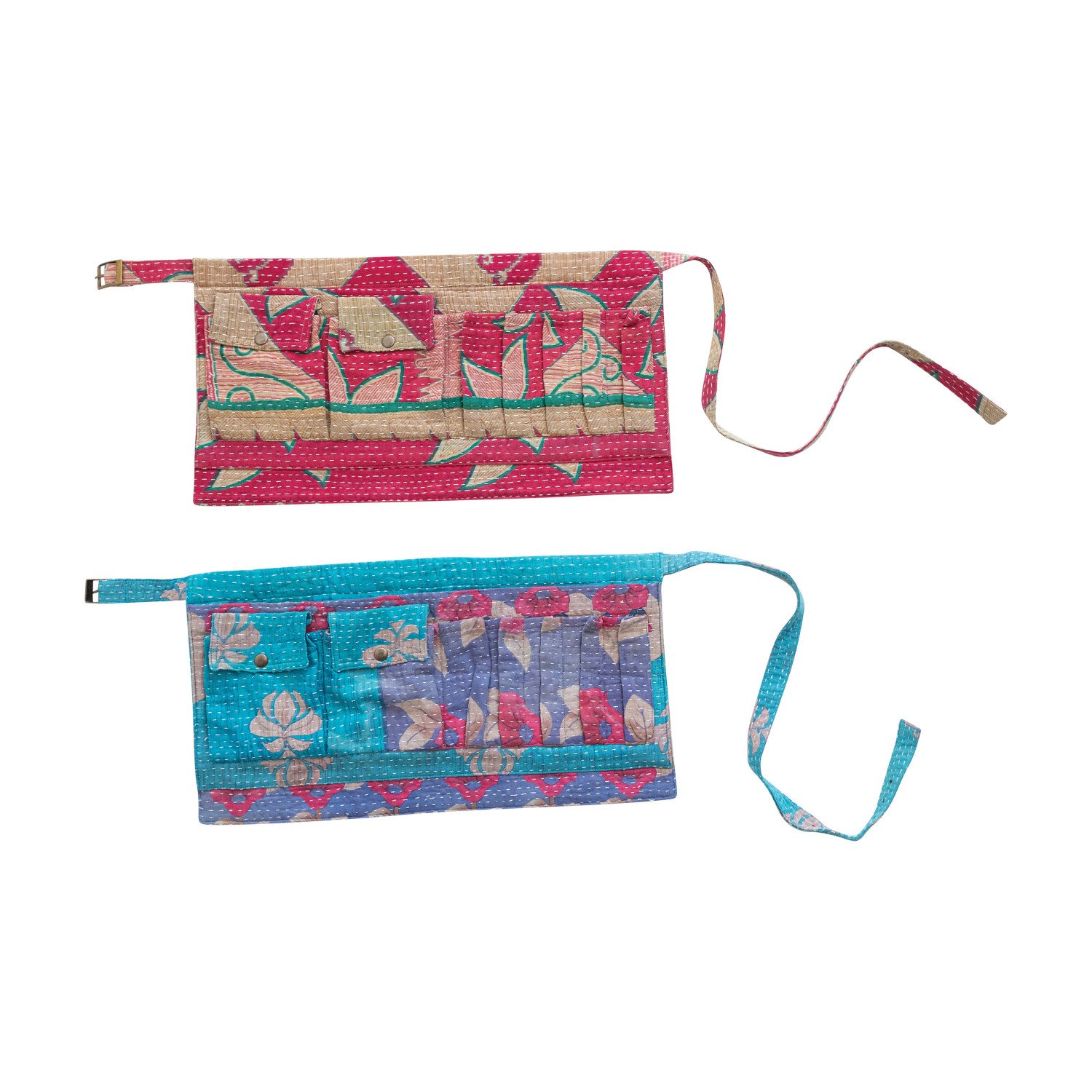Vintage Kantha Fabric Half Apron w/ Canvas Back & 6 Pockets (Each One Will Vary)