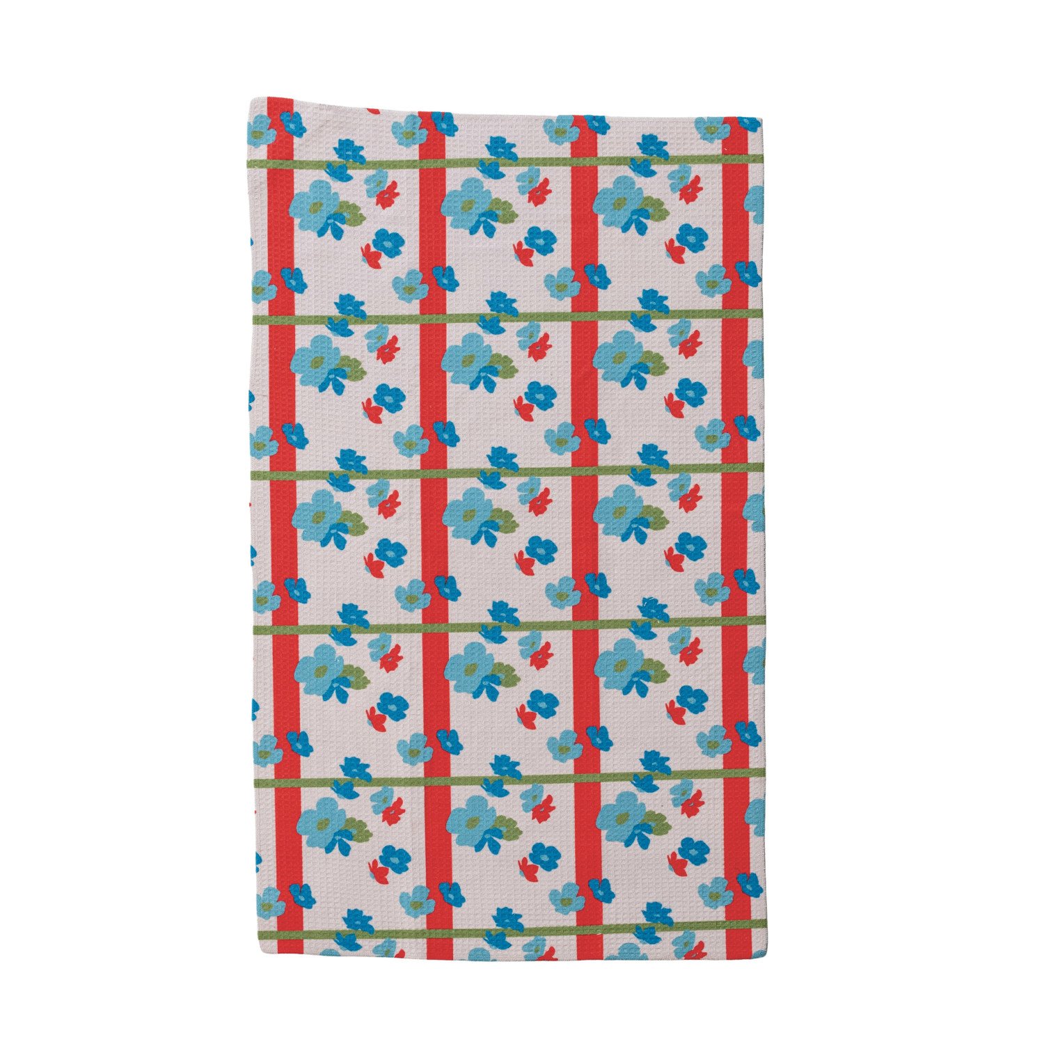 Printed Recycled Microfibre Tea Towel w/ Floral & Stripe Pattern