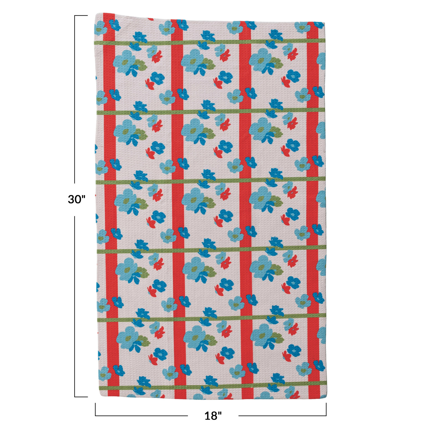 Catalog Name: 30"L x 18"W Printed Recycled Microfibre Tea Towel w/ Floral & Stripe Pattern, Multi Color