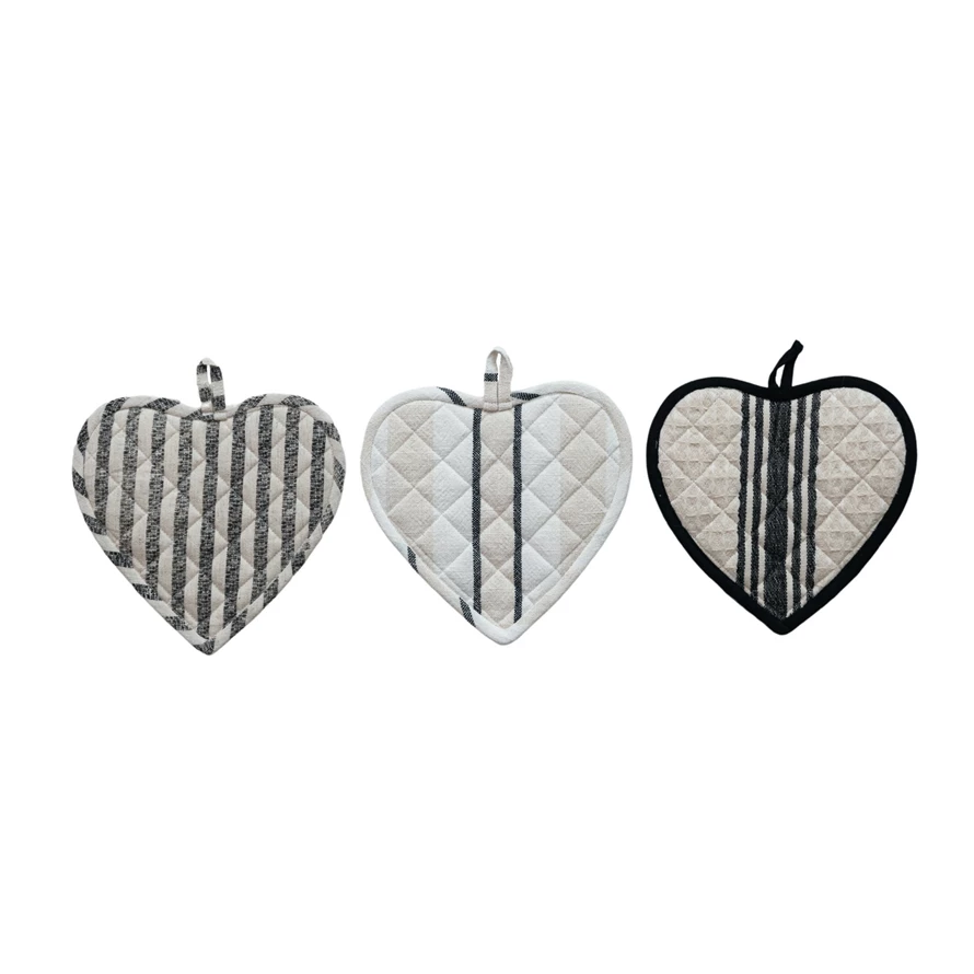 Cotton Quilted Heart Shaped Pot Holder w/ Stripes, 3 Styles