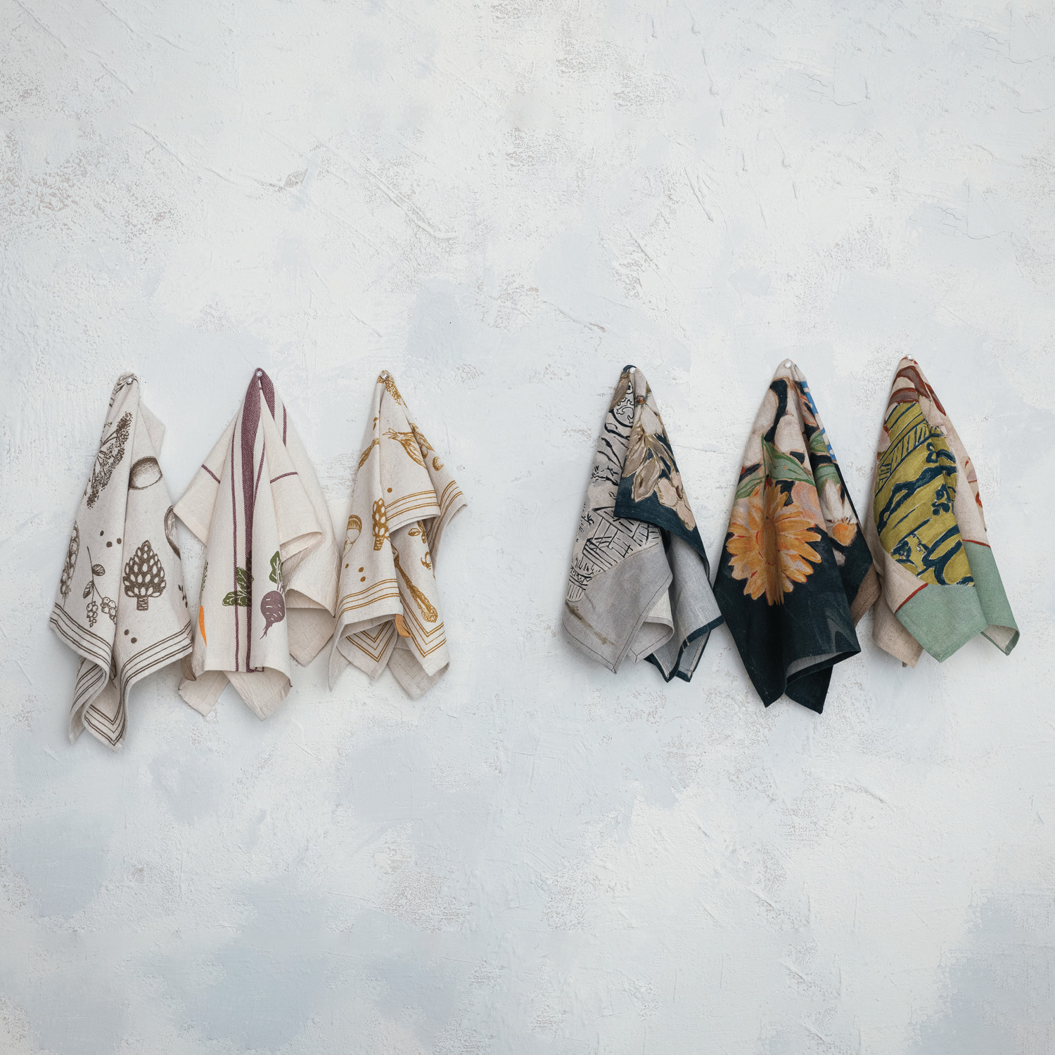 Cotton & Linen Printed Tea Towel w/ Flowers in Vase, 3 Styles ©