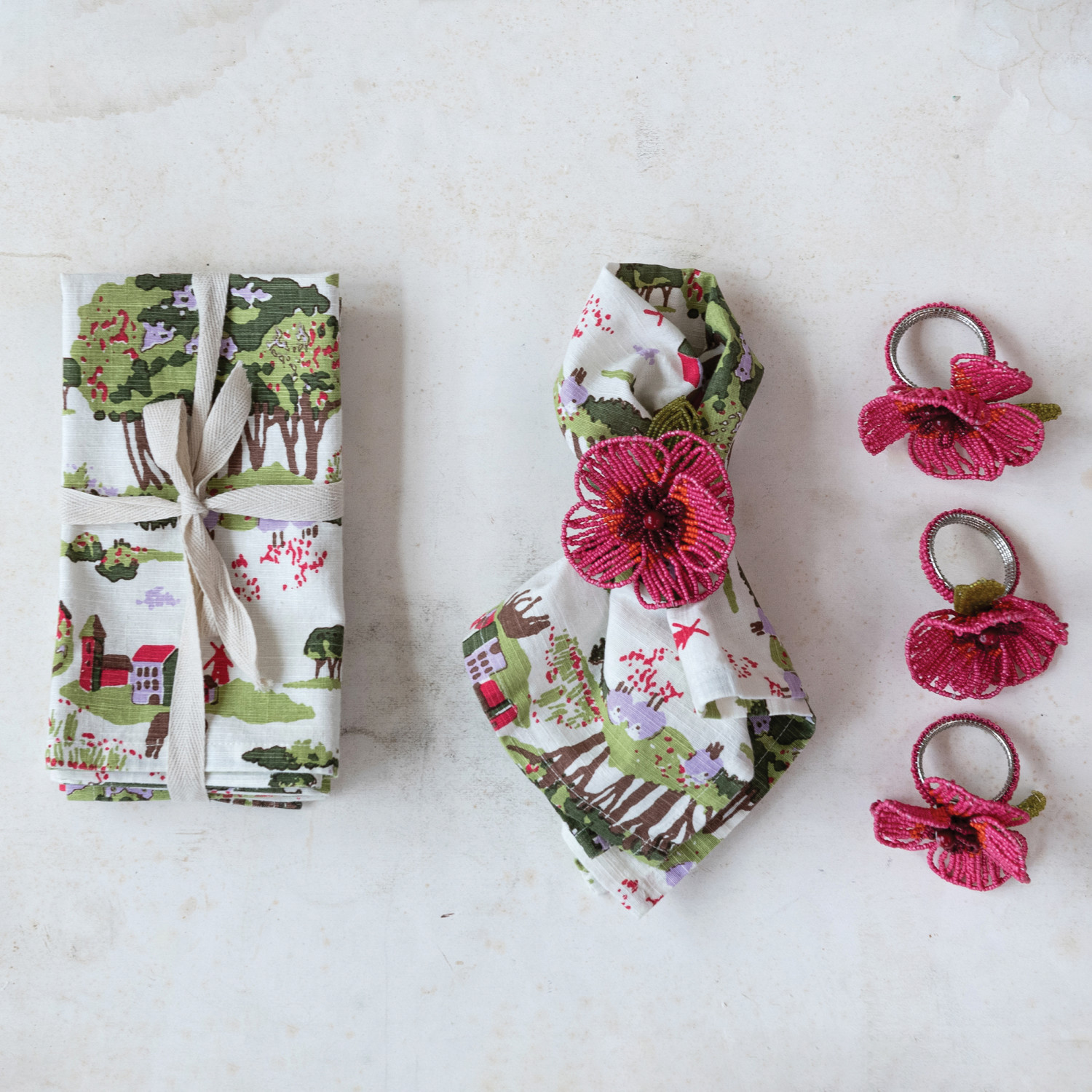 18" Square Cotton Printed Napkins, Set of 4 Tied with Cotton Tape