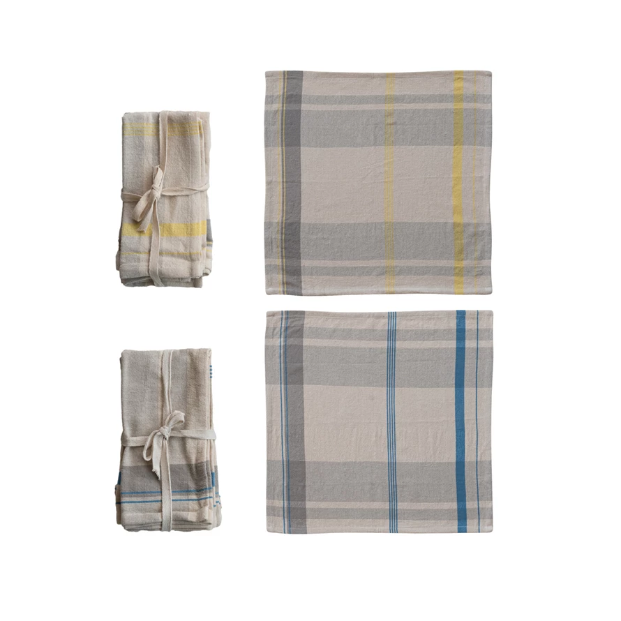 18" Square Woven Cotton Plaid Napkins, Set of 4