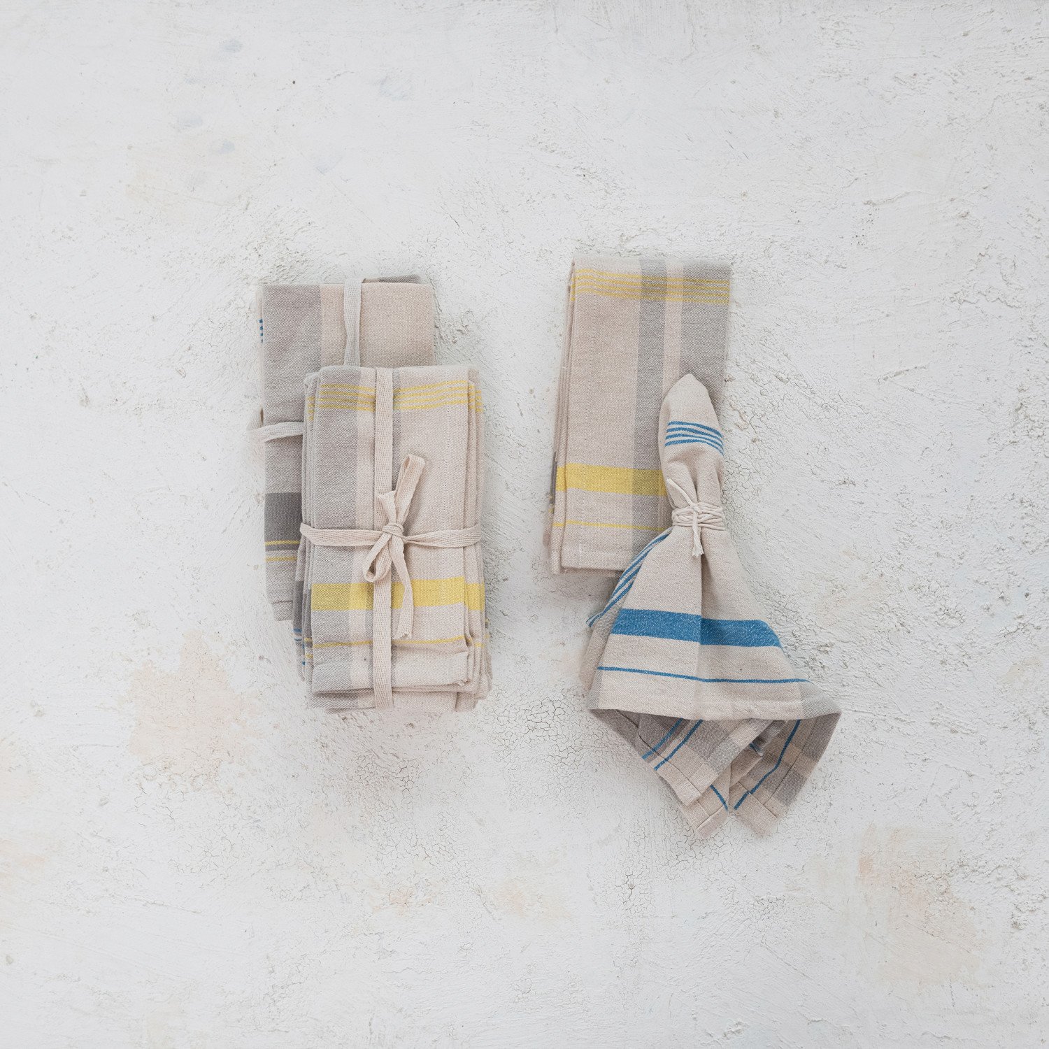 Catalog Name: 18" Square Woven Cotton Plaid Napkins, Multi Color, Set of 4 Tied w/ Cotton Tape