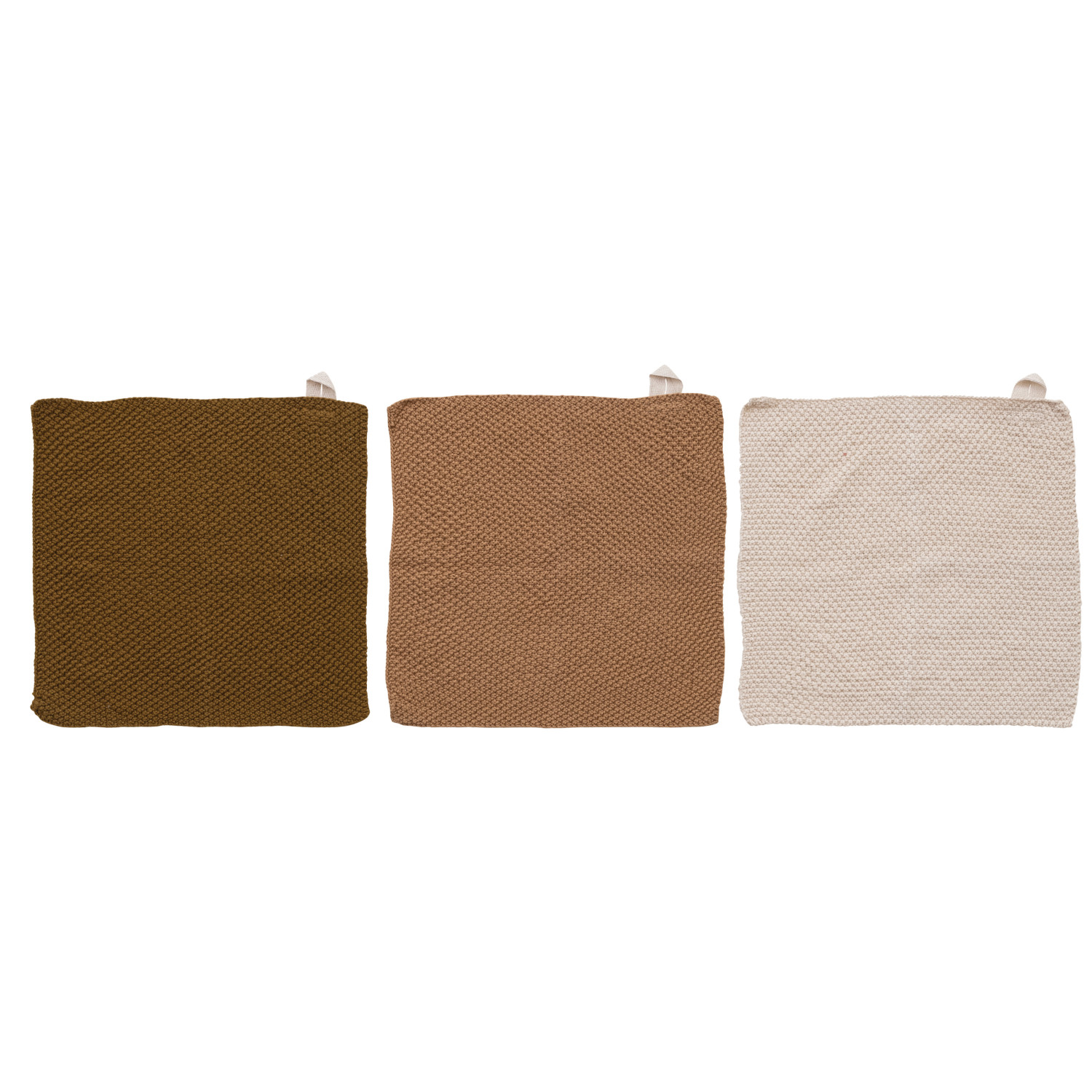 Cotton Knit Dish Cloths, Set of 3 Tied w/ Cotton Tape