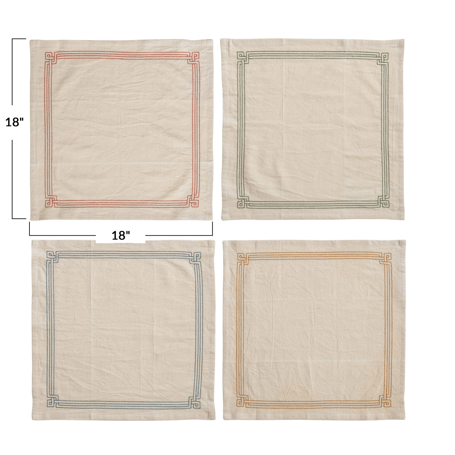 Catalog Name: 18" Square Cotton Napkins w/ Embroidery, Multi Color, Set of 4 Tied w/ Jute