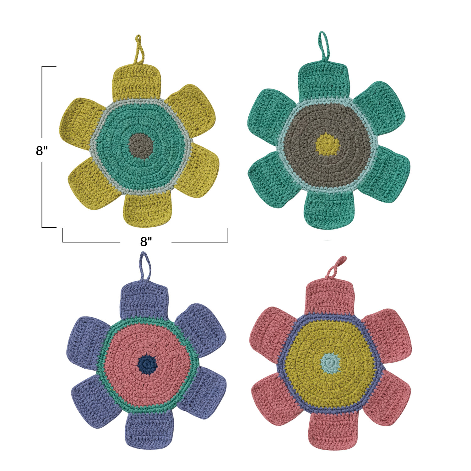 Cotton Crocheted Flower Shaped Pot Holder, 4 Styles