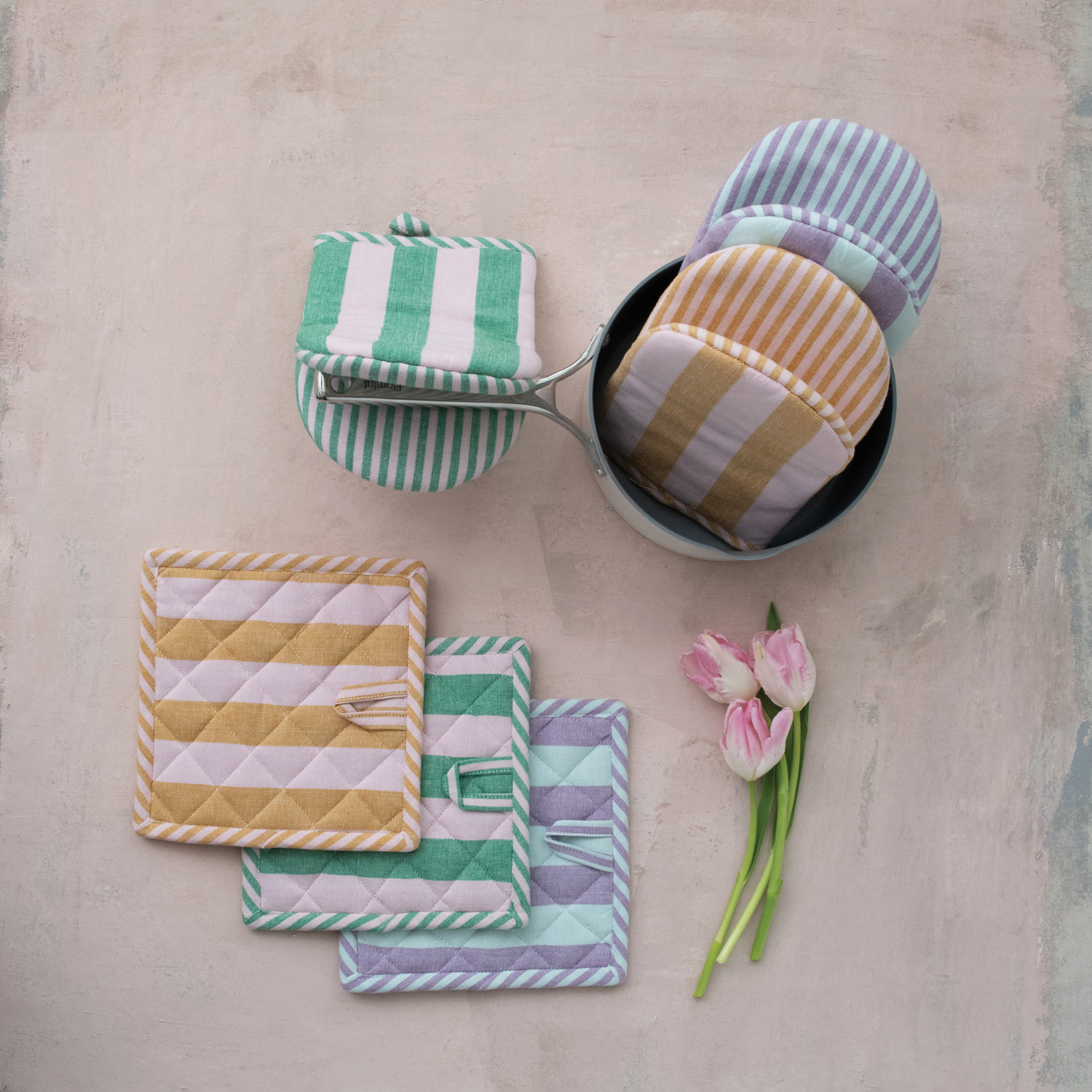 Catalog Name: 8" Square Woven Cotton Striped Pot Holder, 3 Colors