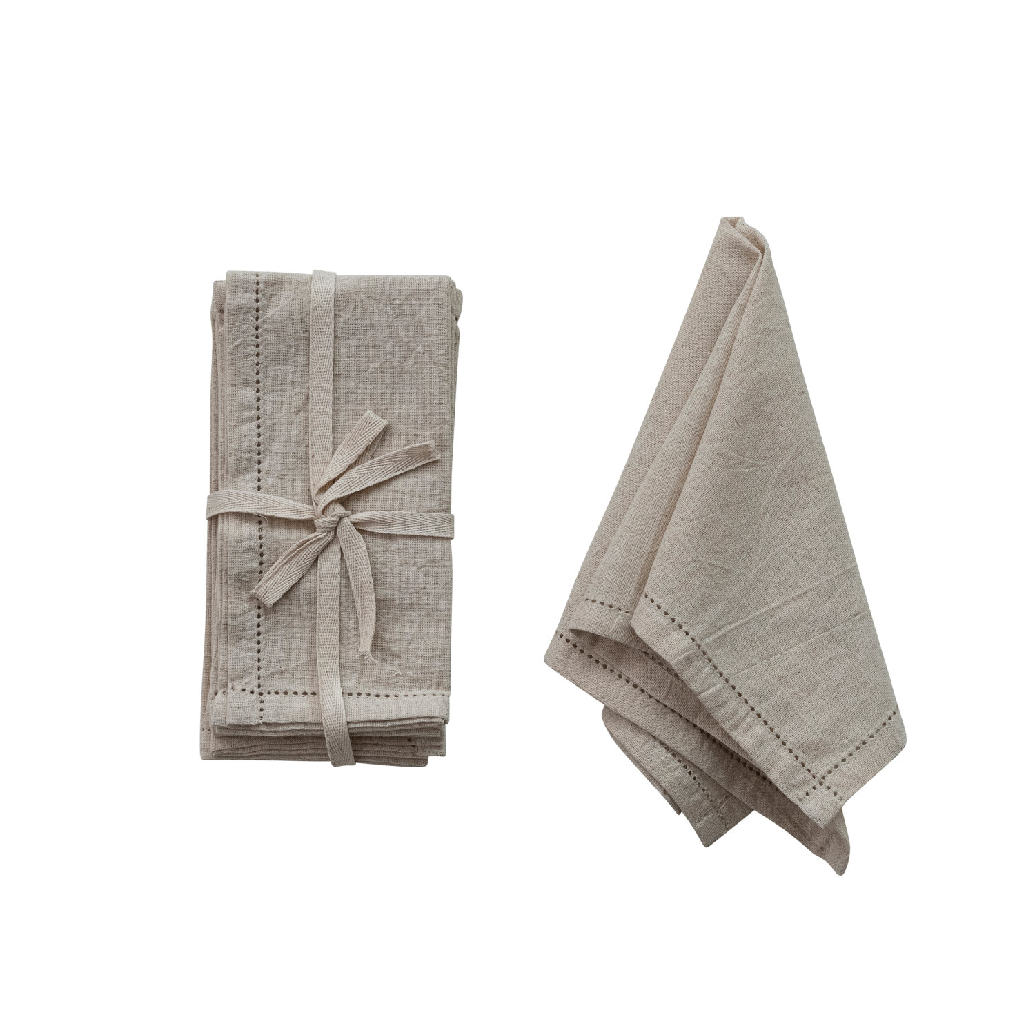 Cotton & Linen Napkins with Border Stitch, Natural, Set of 4 Tied with Cotton Tape