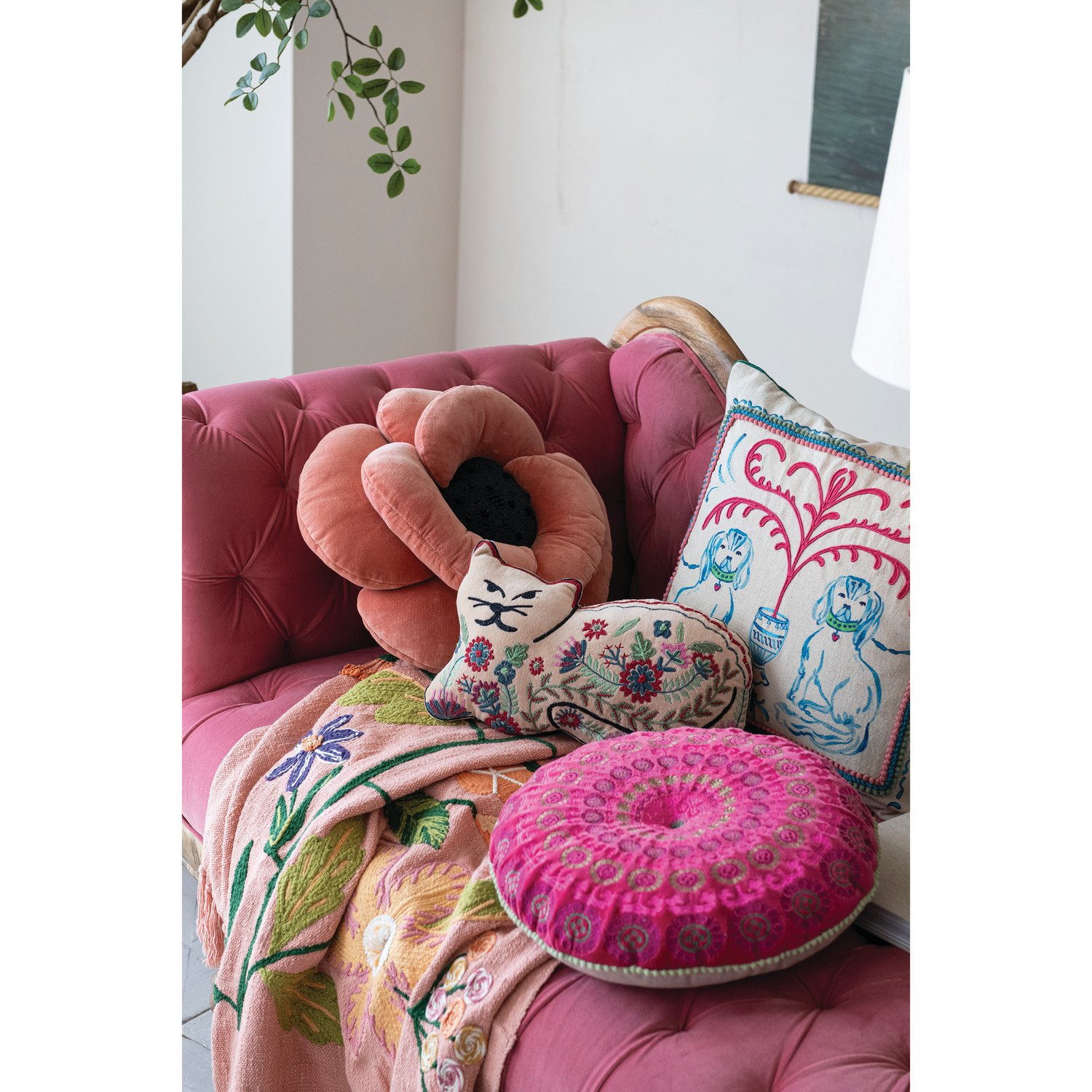 Catalog Name: 18" Square Cotton & Linen Printed Pillow w/ Staffordshire Dog Scene, Embroidery & Velvet Back, Multi Color