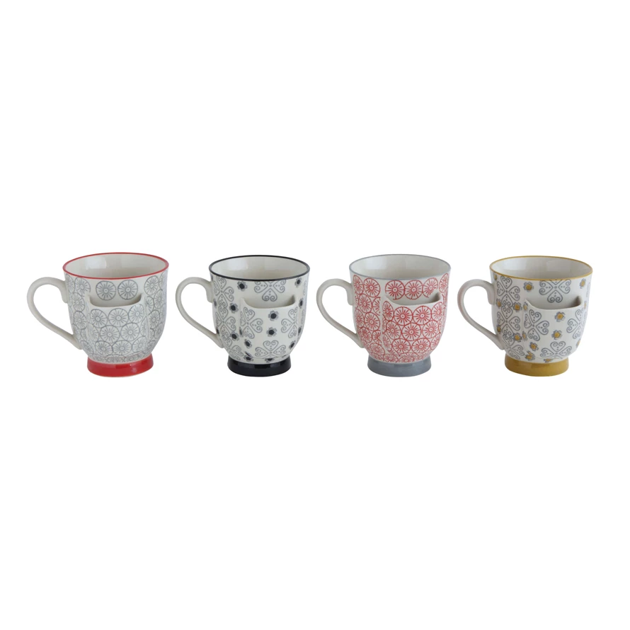 Catalog Name: 4-1/2" Round x 4"H 12 oz. Hand-Stamped Stoneware Mug w/ Tea Bag Holder, 4 Styles