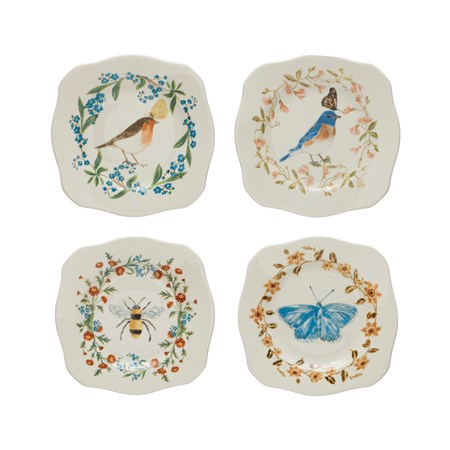 This artfully crafted set of stoneware mugs features delicately hand stamped wax relief botanical designs in 4 striking styles.