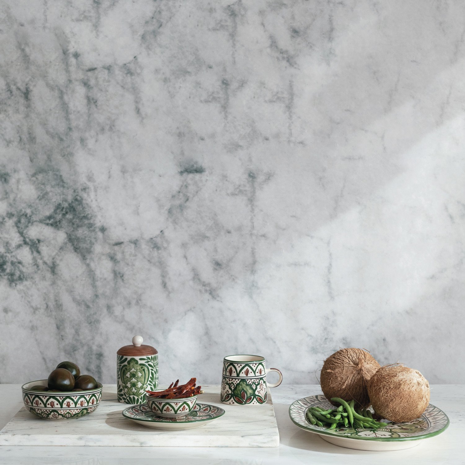 10 oz. Hand-Painted Stoneware Mug w/ Design, Cream Color, Brown & Green