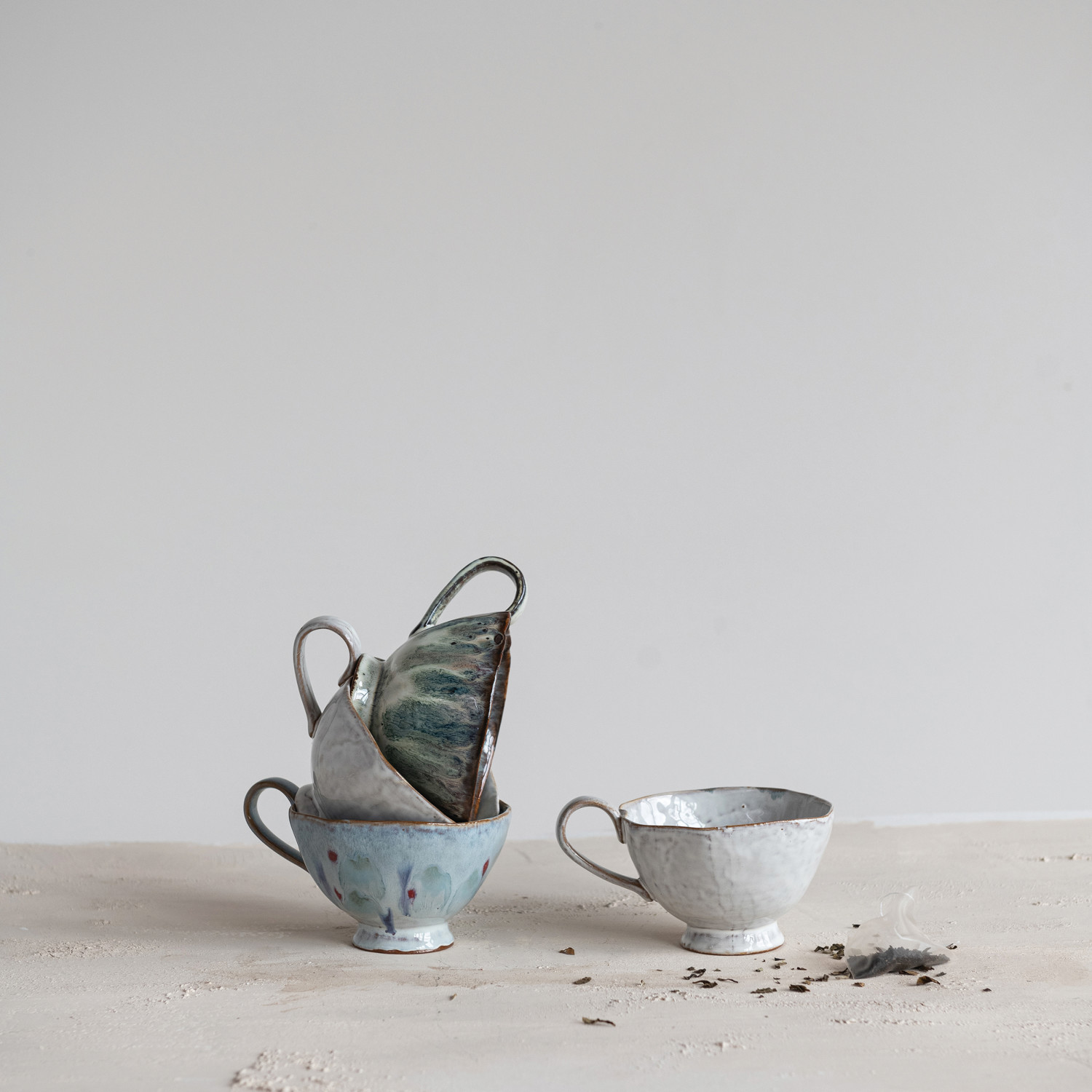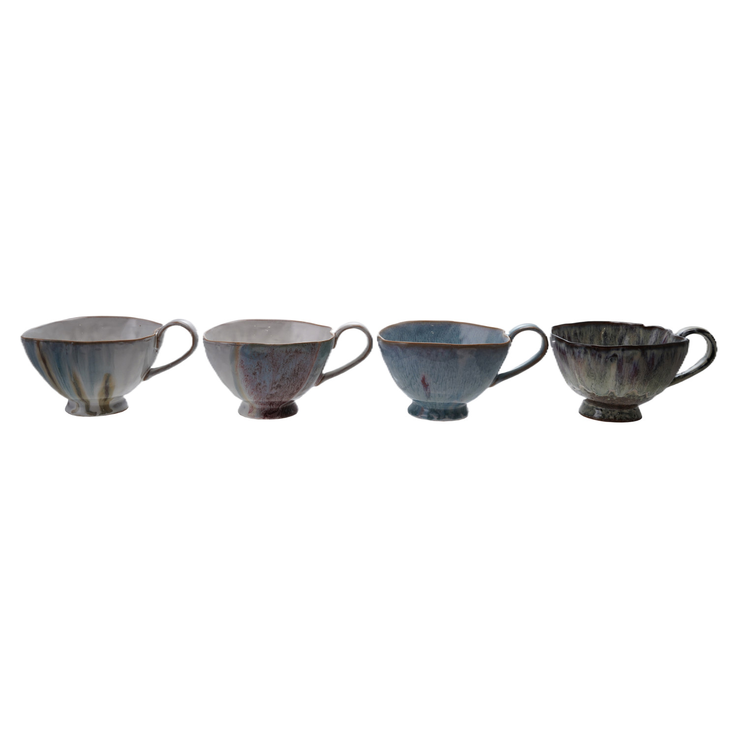Catalog Name: 4-1/2" Round x 3-1/4"H 14 oz. Stoneware Organic Shaped Footed Mug, Reactive Glaze, 4 Colors (Each One Will Vary)