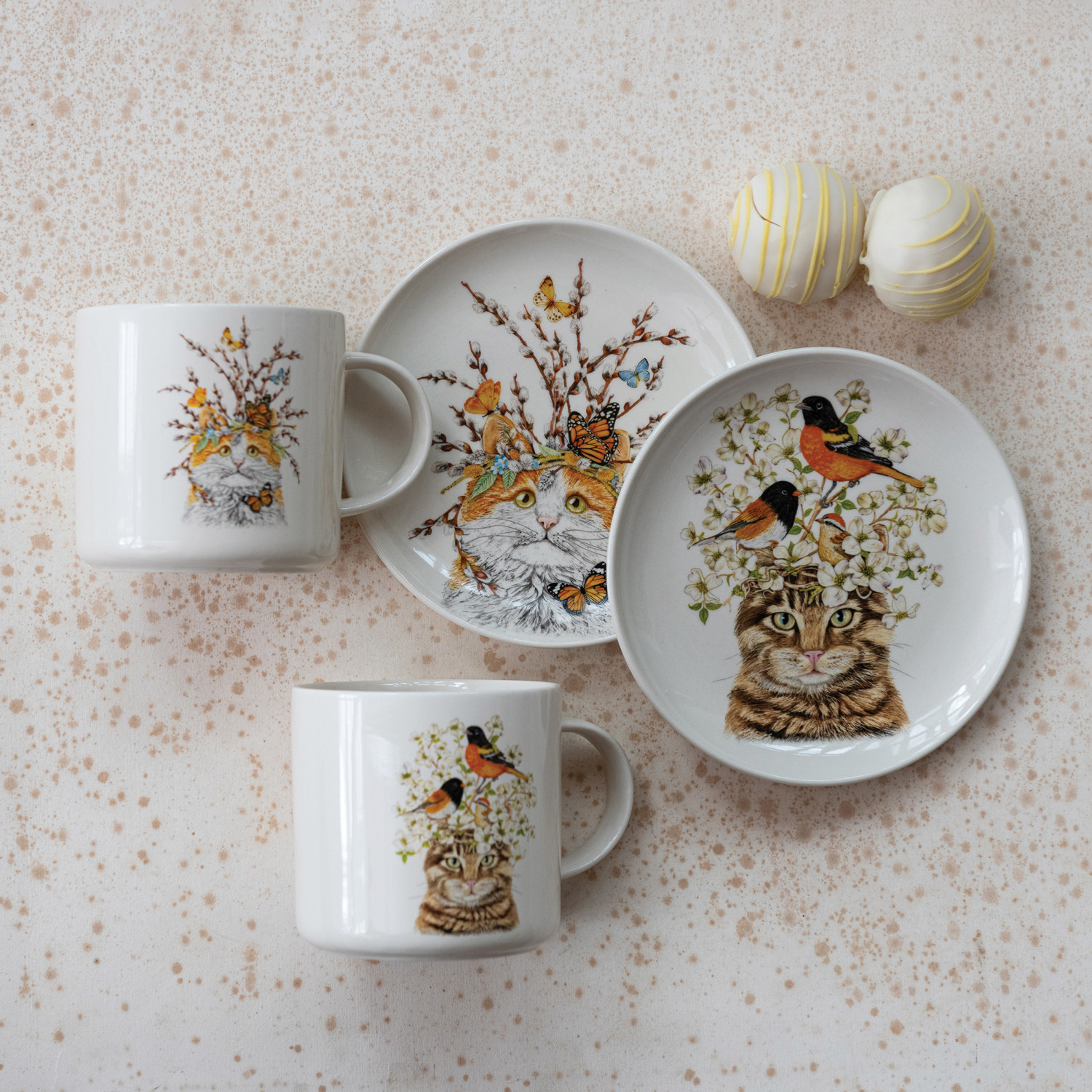 14 oz. Stoneware Mug with Cat & Flora/Fauna, 2 Styles ©