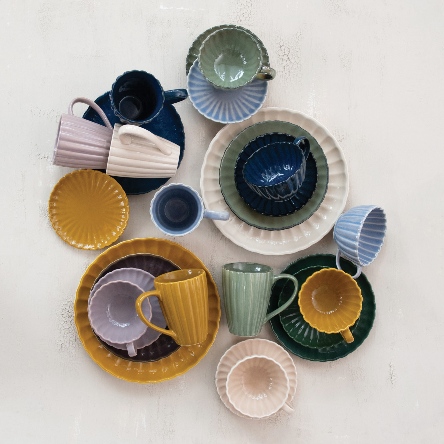 Catalog Name: 3-1/2" Round x 4-3/4"H 14 oz. Stoneware Ribbed Mug, Reactive Glaze, Green (Each One Will Vary)