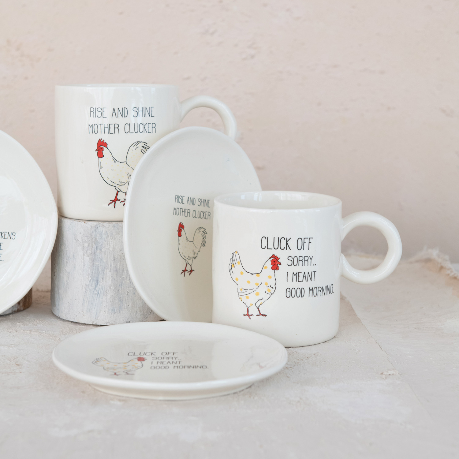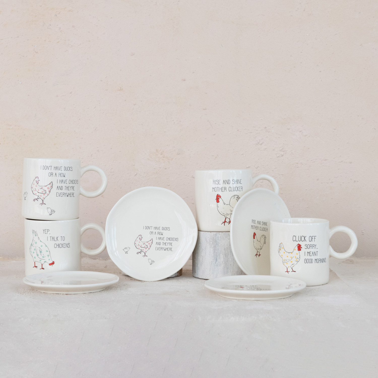 15 oz. Stoneware Mug w/ Chicken & Saying, 4 Styles