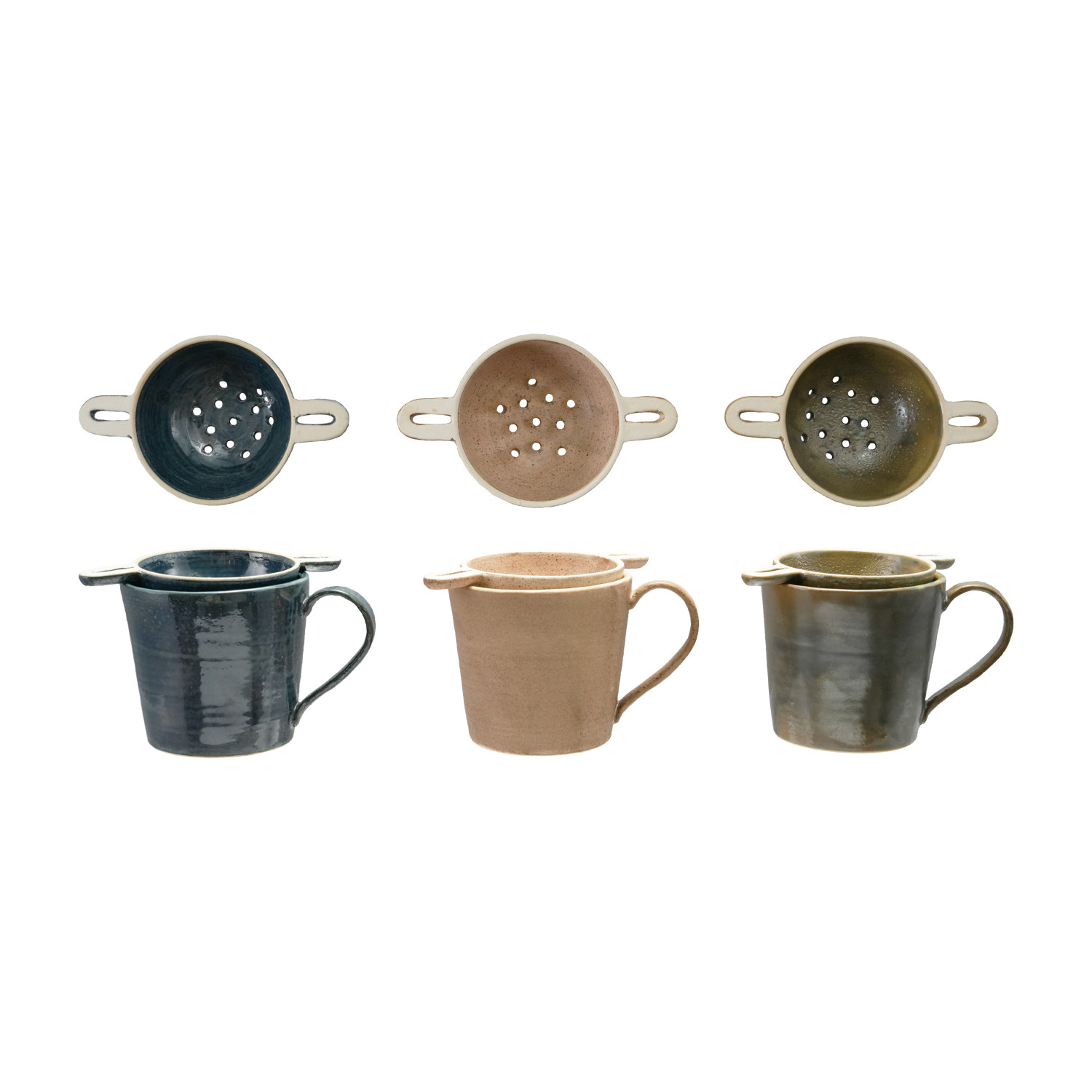 14 oz. Stoneware Mug with Strainer, Set of 2, 3 Colors (Each One Will Vary)