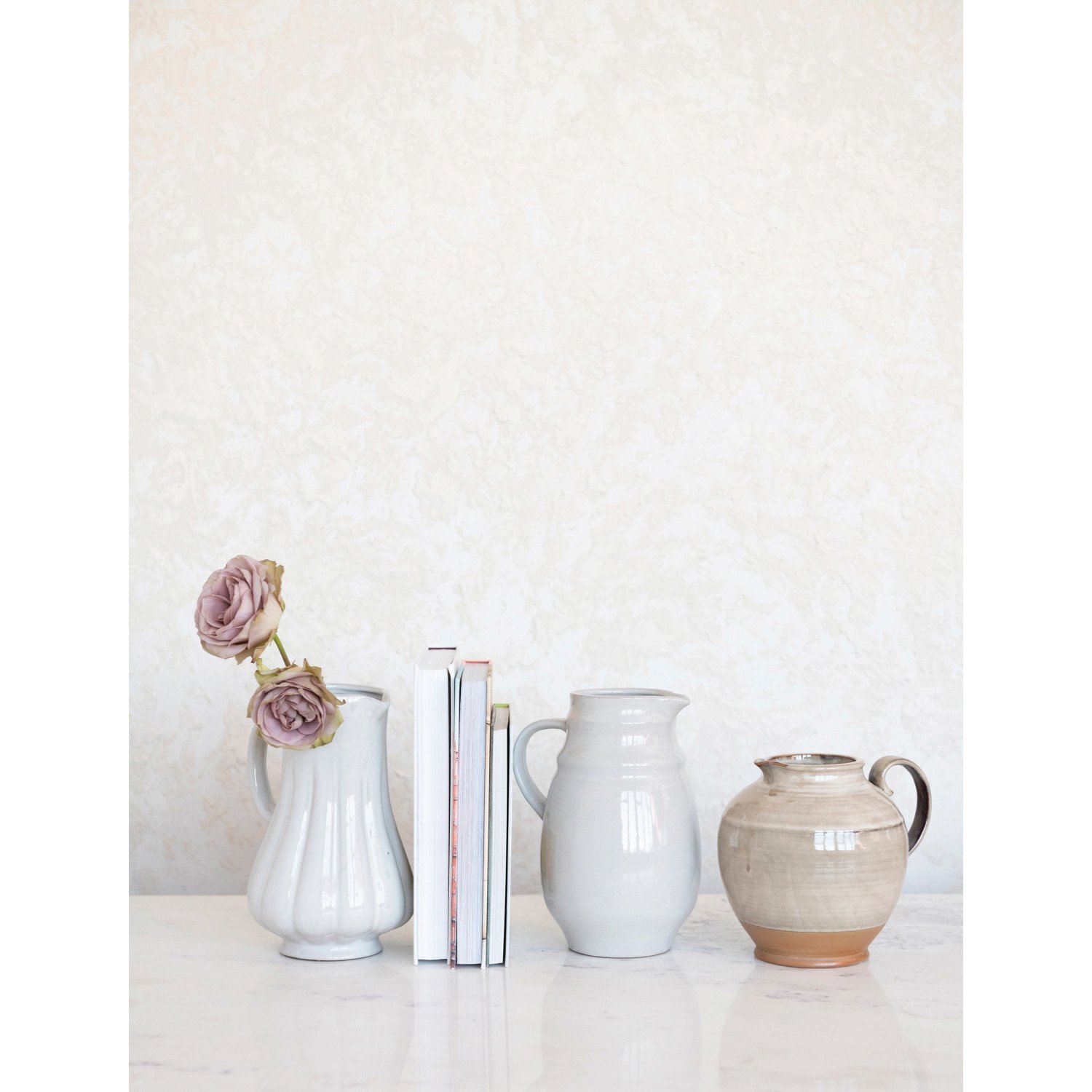 Catalog Name: 8"L x 6-1/2"W x 6-3/4"H 2-1/2 Quart Stoneware Pitcher, Reactive Glaze, Beige (Each One Will Vary)