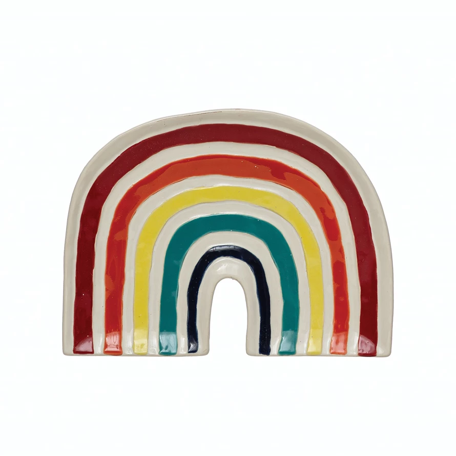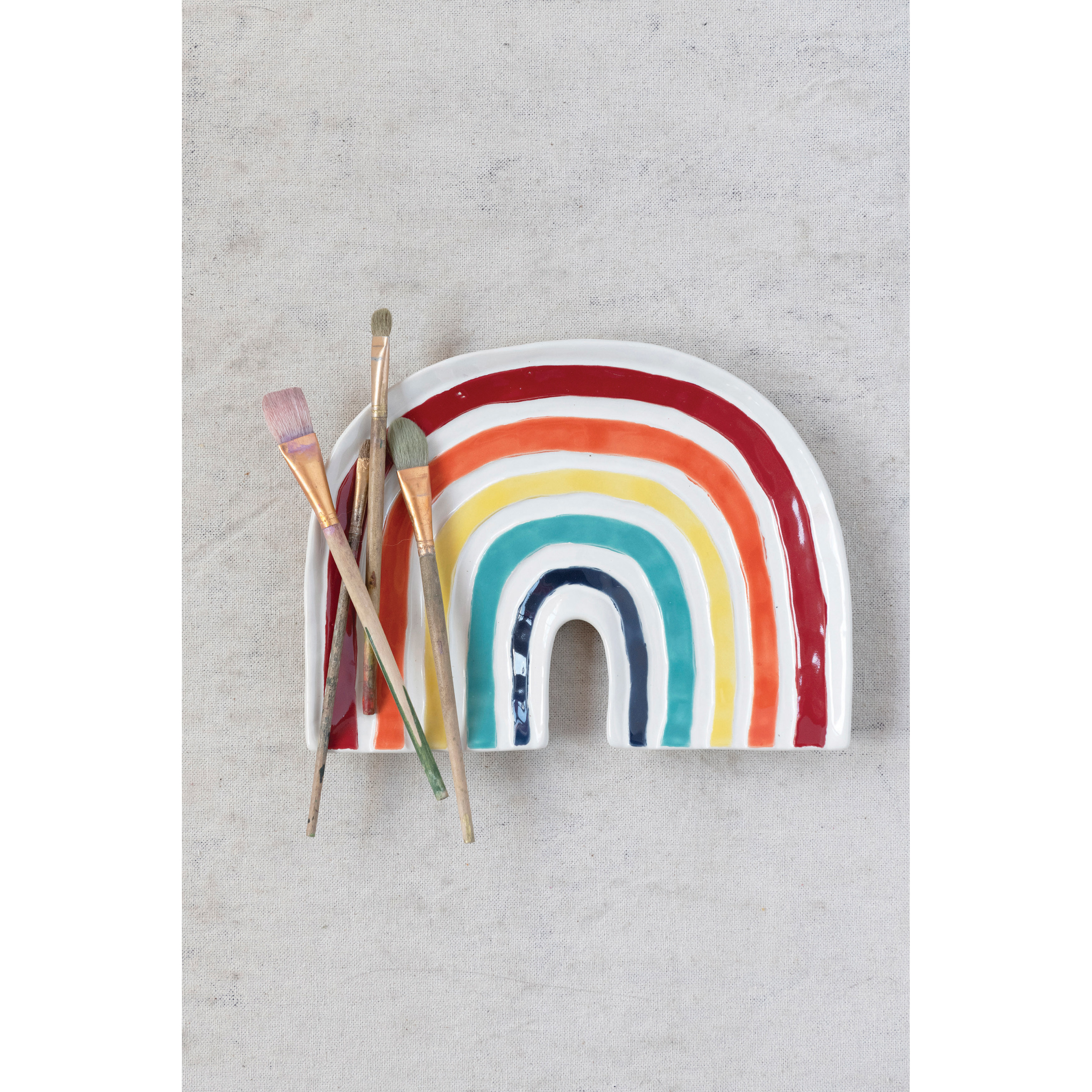 Multicolor hand-painted stoneware rainbow plate. Add a cheerful touch to any tablescape with this vibrant plate. Made from 100% stoneware. Curate a space that reflects your unique sense of style with intentionally designed home décor.