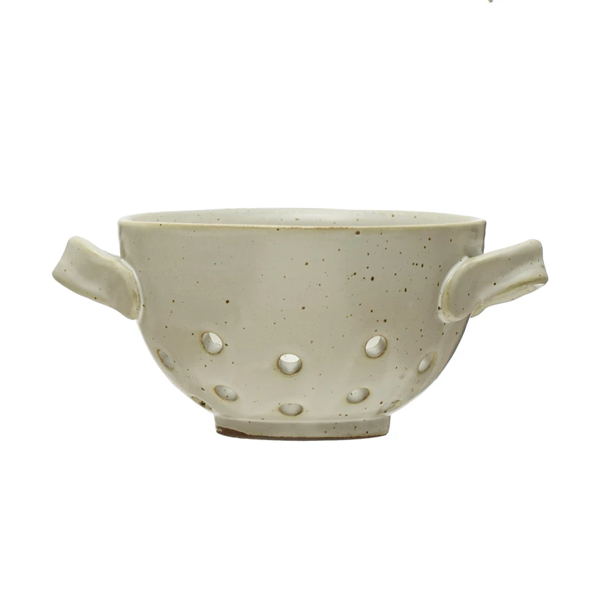 Catalog Name: 4-1/4" Round x 2-1/2"H Stoneware Berry Bowl w/ Handles, Reactive Glaze, White (Each One Will Vary)