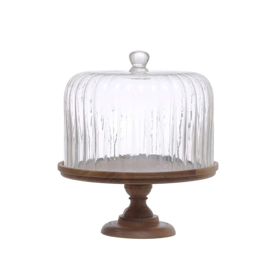 These collections of serving pieces are a must-have for every kitchen for those who love to cook and serve delicious food. They can find the ideal dishes for every table in classic white, vibrant colors, or modern patterns. The serving pieces come in various shapes, sizes, and materials, such as ceramic, stoneware, porcelain, or glass. They can create their unique style by mixing and matching them or choose a matching set for a coordinated look. These serveware are not only picture-worthy, but also durable, microwave-safe, and dishwasher-safe. These collections of serving pieces will make every meal more fun and memorable, whether they are hosting a dinner party, a family gathering, or a casual brunch. Elegant and rustic, this set includes two serving pedestals featuring a 12-inch round acacia wood base and a fluted glass cloche. Perfect for a farmhouse or rustic-inspired home décor, these pedestals add a touch of natural beauty to any setting. Use these pedestals to showcase and serve delicious baked goods, and artisanal cheeses, ideal for special occasions, dinner parties, or as charming display pieces in the kitchen or dining area. Made of pure Acacia wood.