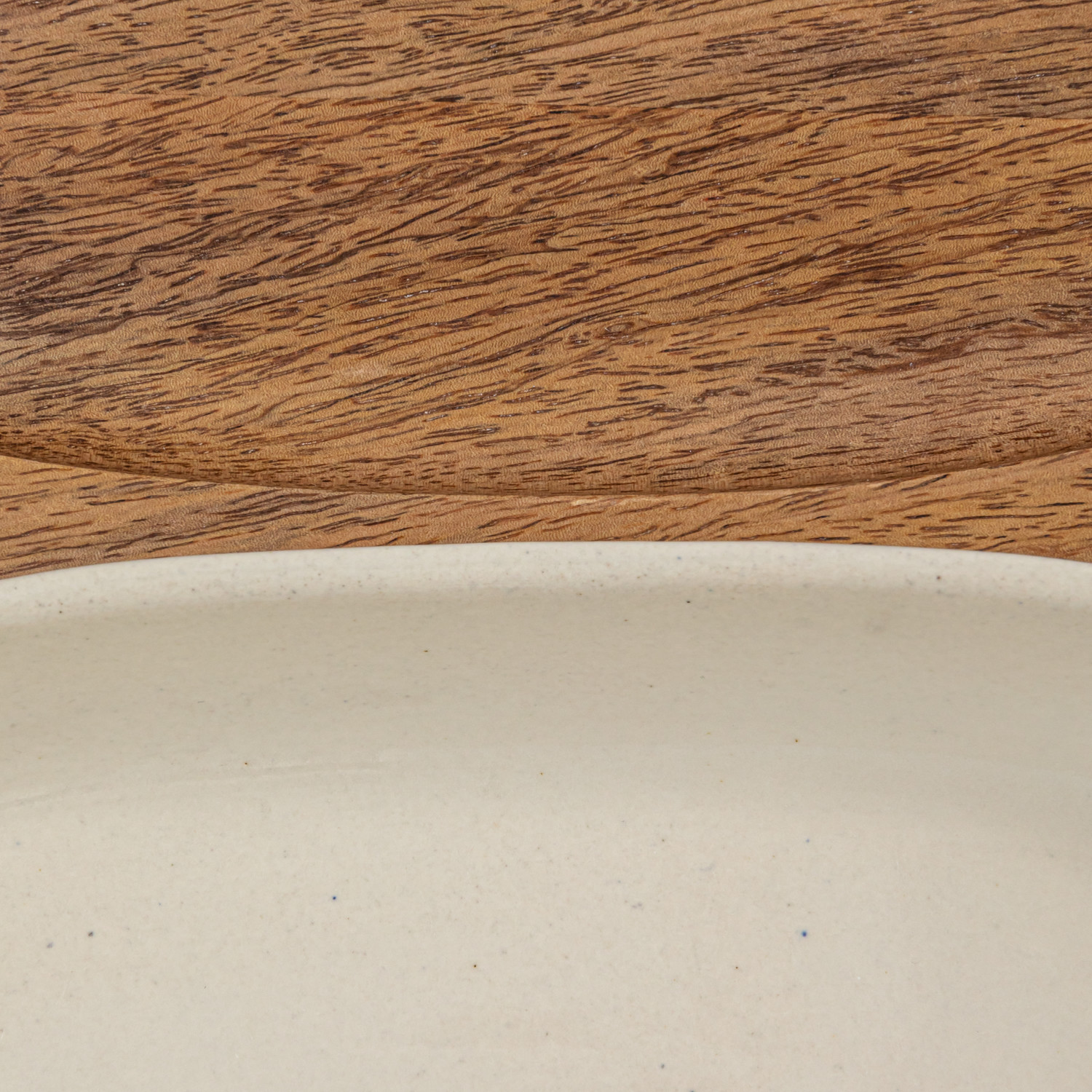 Catalog Name: 12-3/4"L x 8-1/4"W x 2-1/4"H 1 Quart Stoneware Serving Dish/Casserole Baker w/ Mango Wood Base, Cream Color & Natural, Set of 2