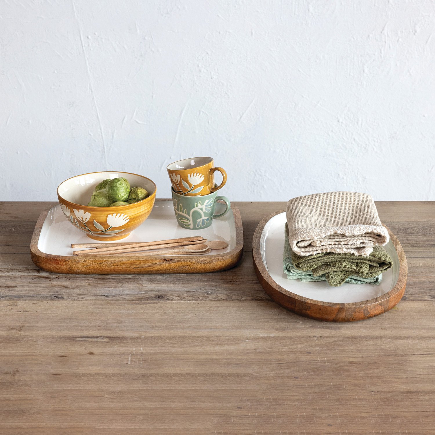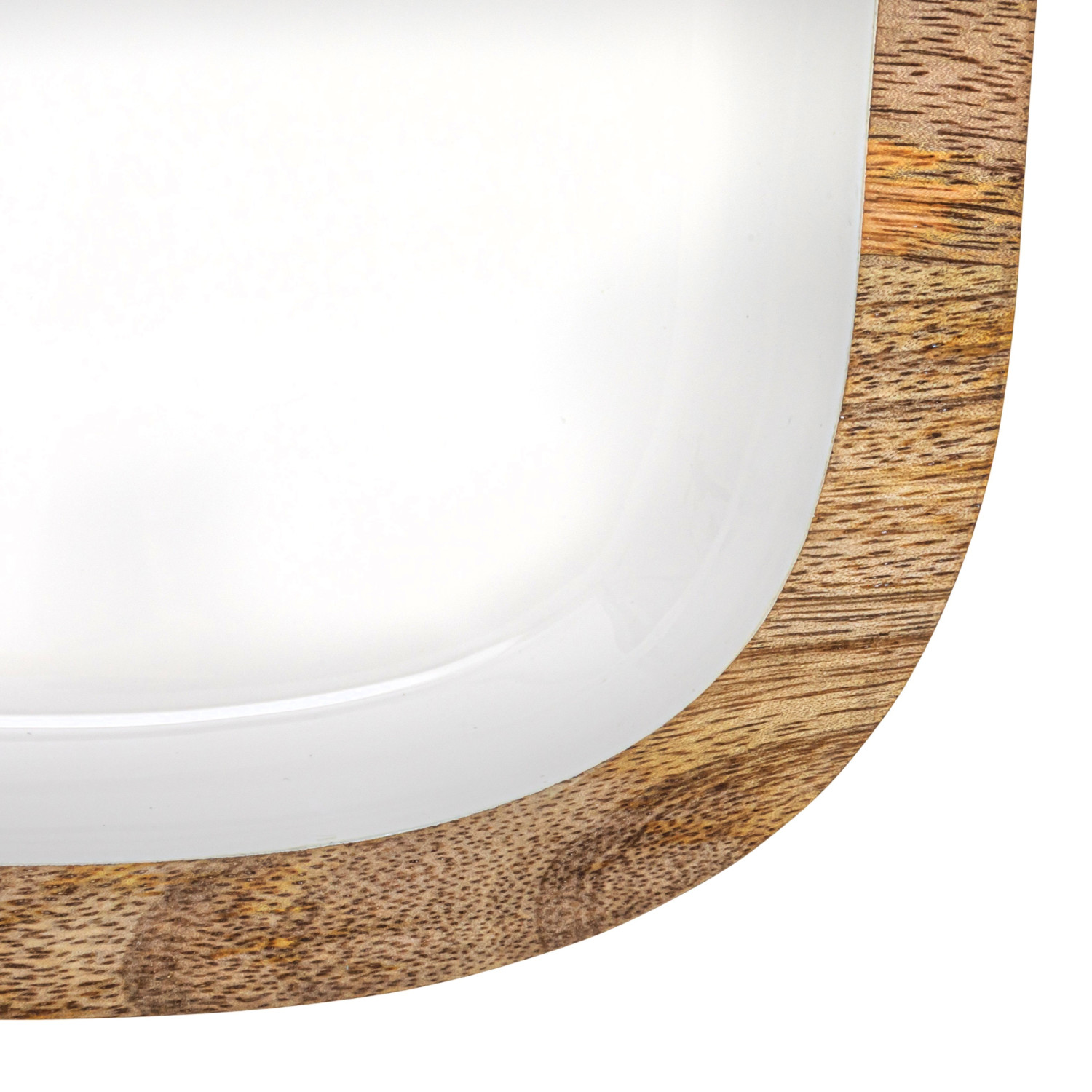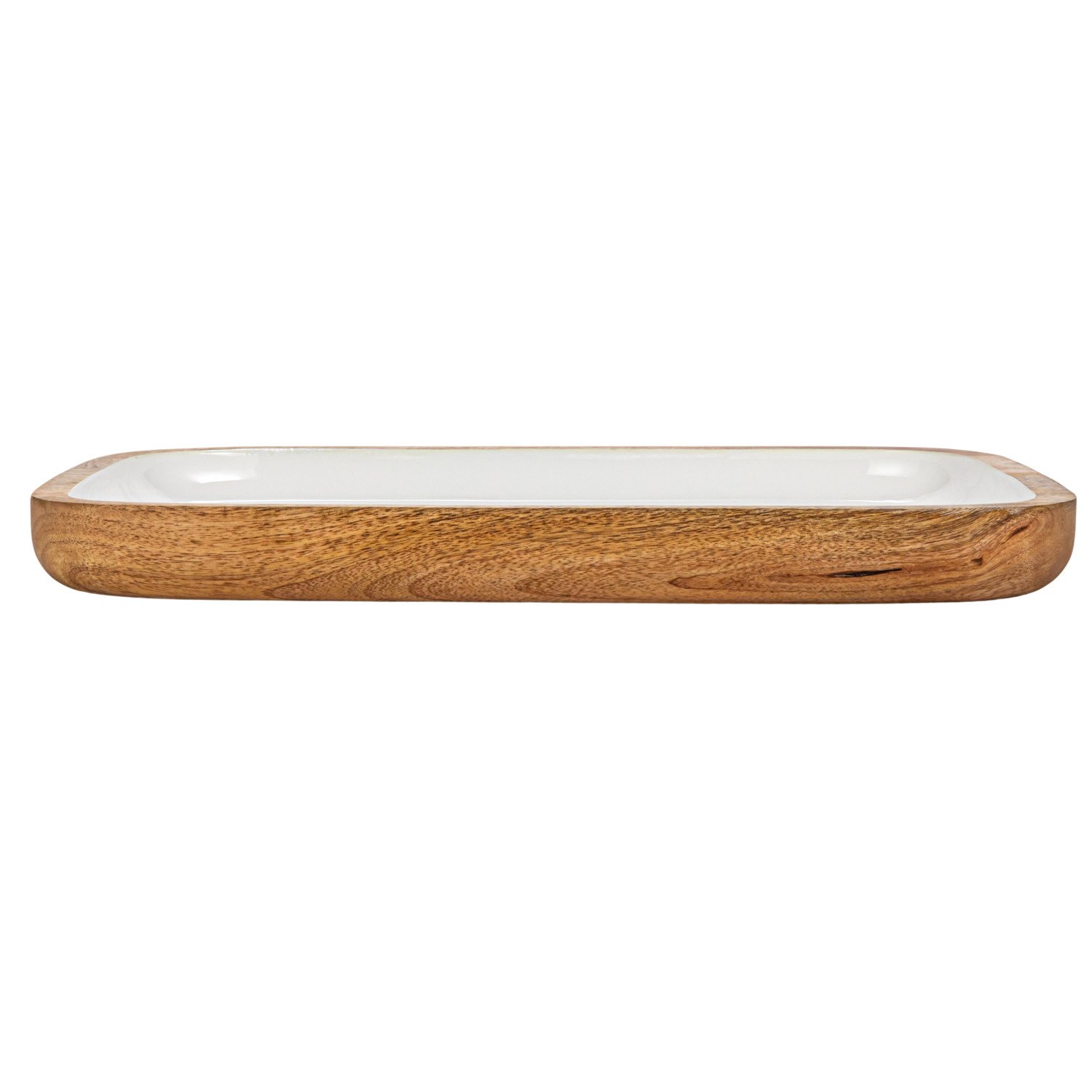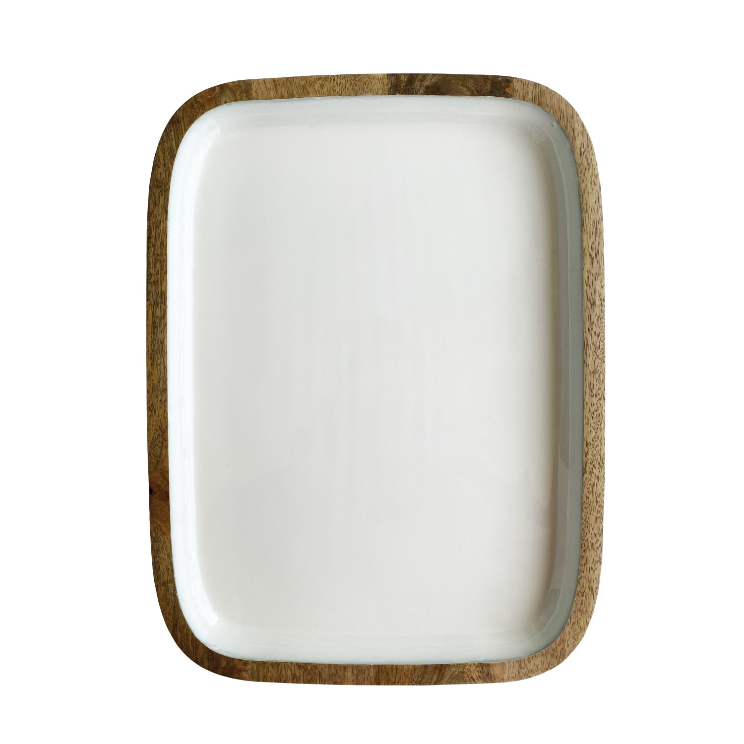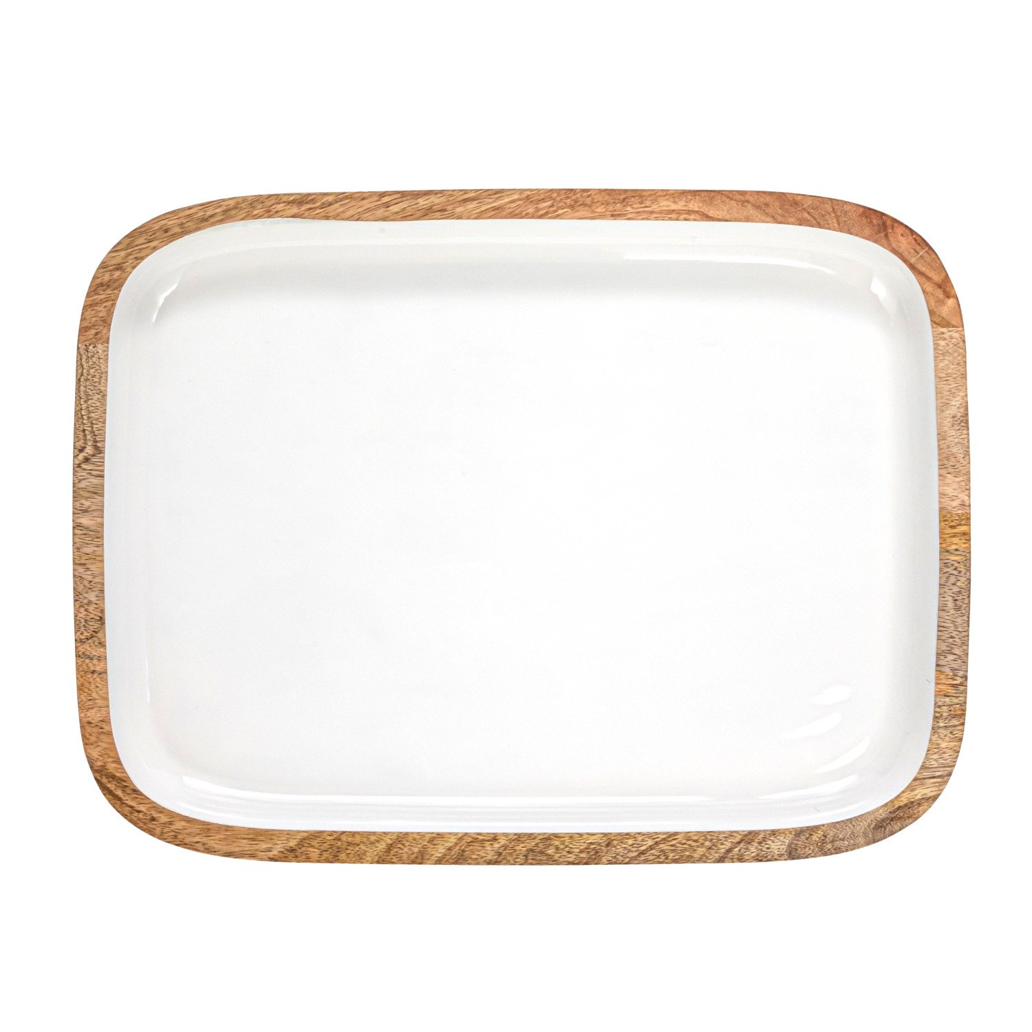 Catalog Name: 16"L x 12"W Enameled Mango Wood Tray, White & Natural