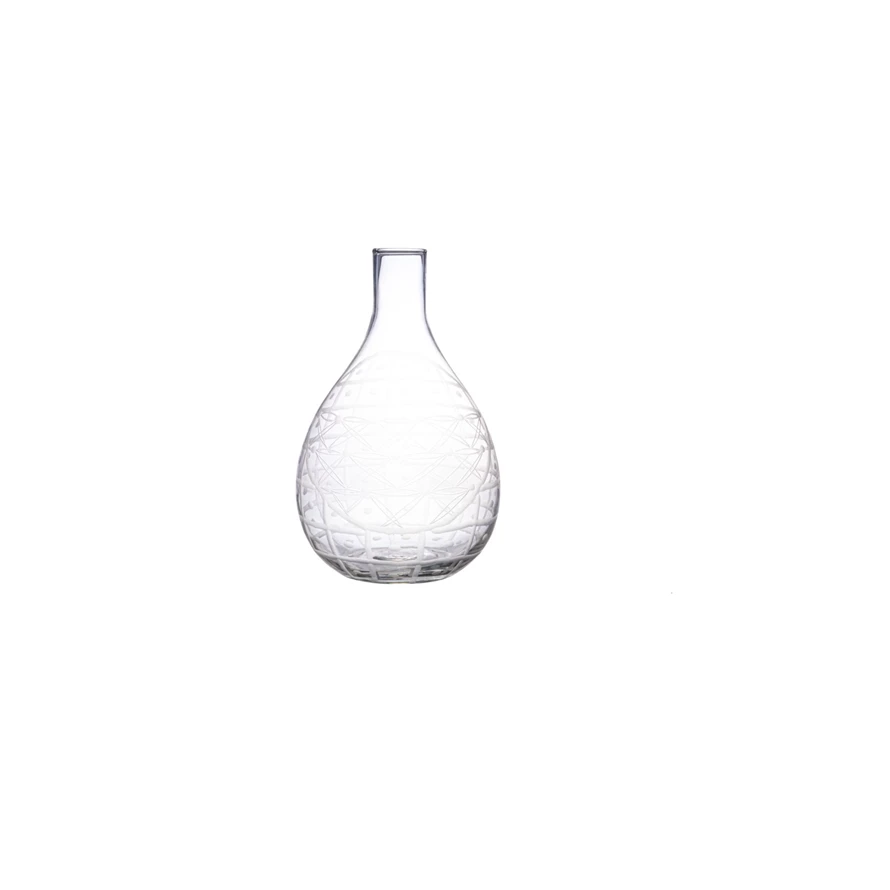 Catalog Name: 7" Round x 11-3/4"H 3-1/2 Quart Hand-Blown Recycled Etched Glass Carafe
