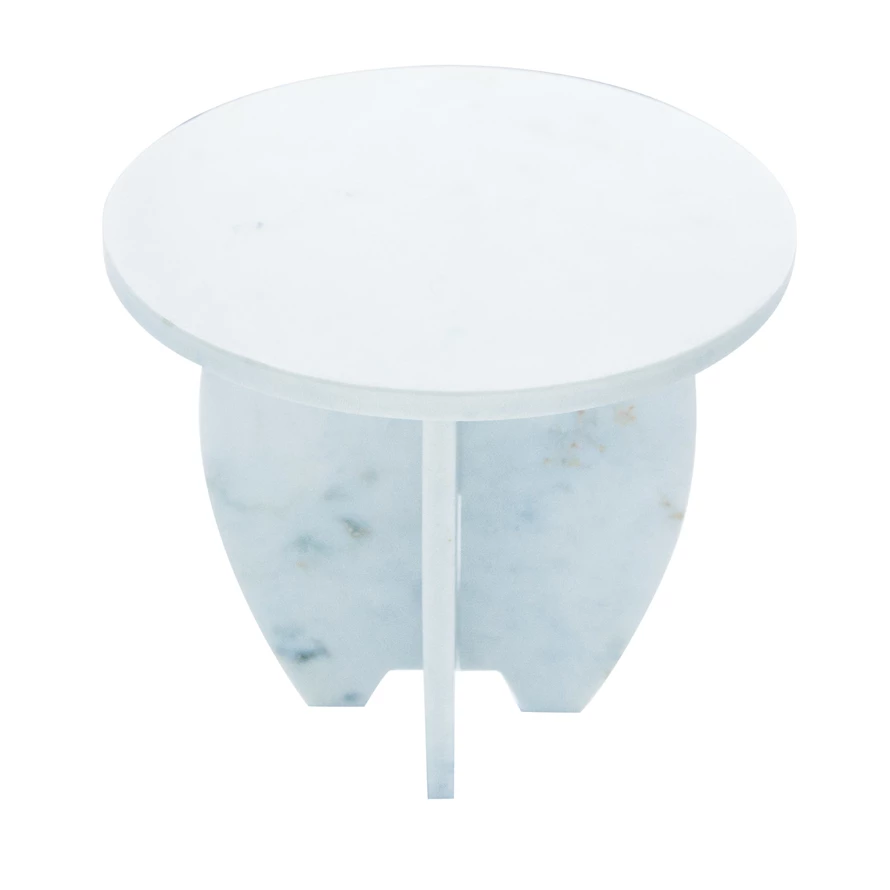 This white marble pedestal with interlocking base is designed to showcase the food in a stylish and elegant way. The white marble surface has a smooth and natural texture that complements any color and theme. The interlocking base adds a unique and modern twist to the classic pedestal shape. The base consists of two pieces that can be easily fitted together or taken apart for storage and cleaning. The pedestal is ideal for serving cakes, pies, cheese, fruits, and other delicacies in a farmhouse, coastal, modern, or contemporary style. The pedestal measures 10 inches in diameter and 10 inches in height, making it suitable for any occasion. Use it for everyday dining or special events, this white marble pedestal with interlocking base will impress the guests and enhance the food presentation.