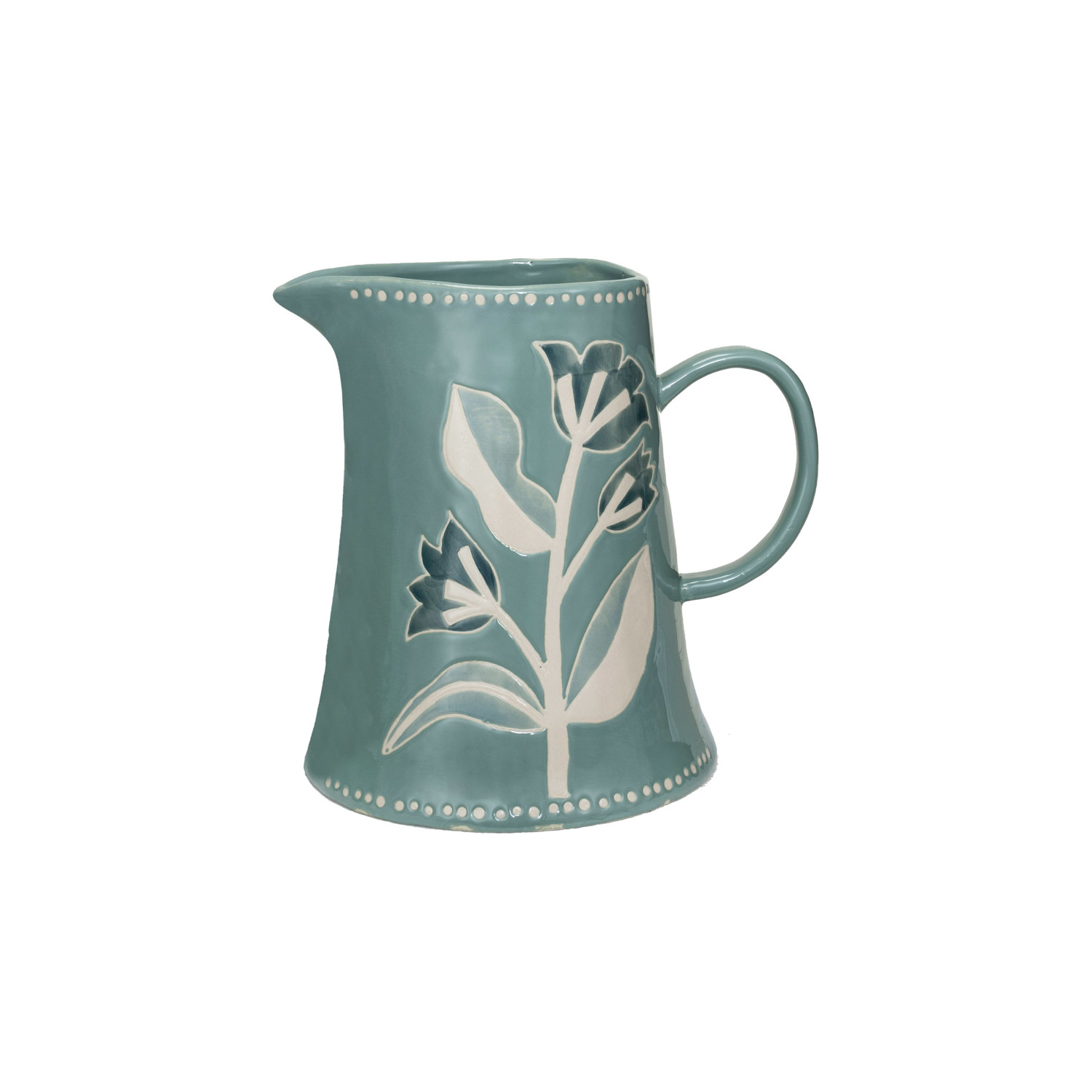 Catalog Name: 8"L x 6-1/2"W x 8"H 2 Quart Hand-Painted Stoneware Pitcher w/ Wax Relief Flowers, Multi Color ©