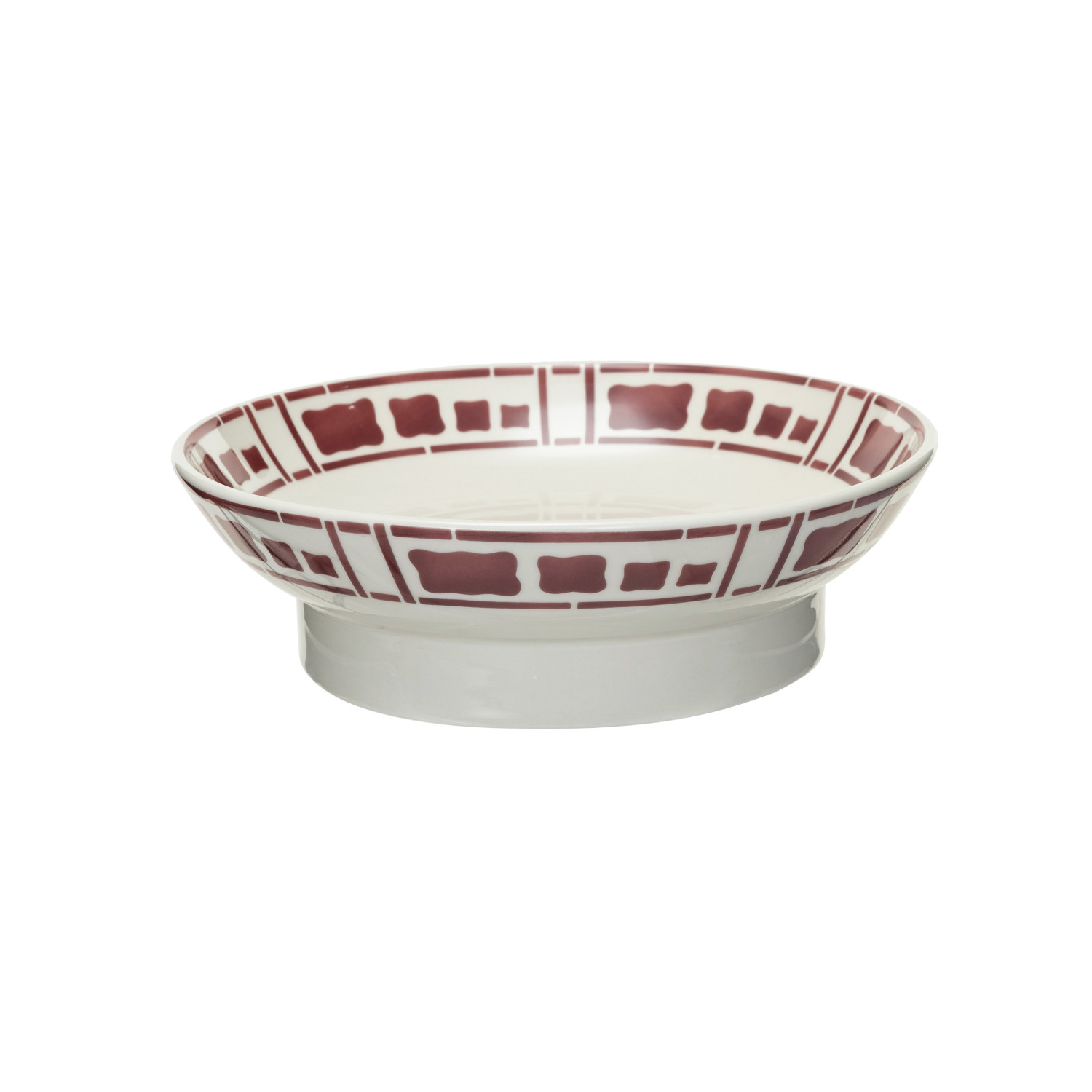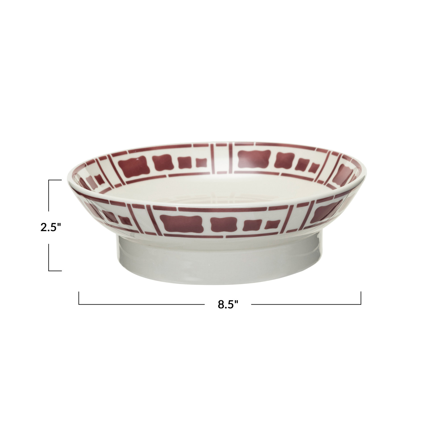Catalog Name: 8-1/2" Round x 2-1/2"H Hand-Painted Stoneware Vintage Reproduction Footed Bowl w/ Pattern, White & Rust Color