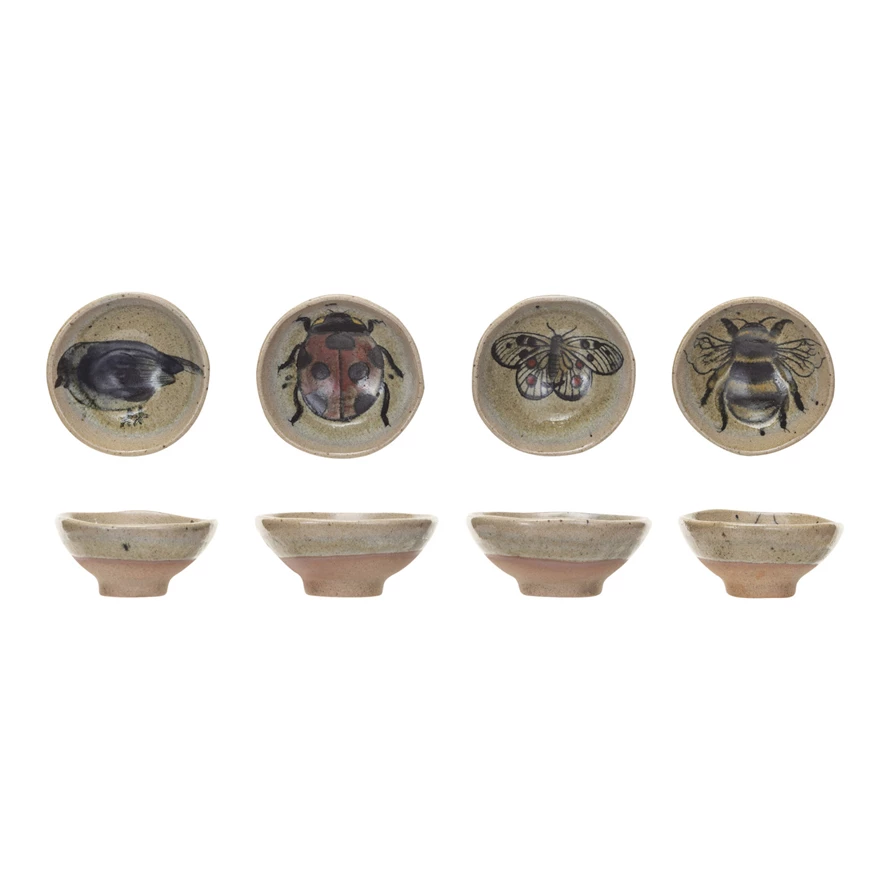 Stoneware Dish w/ Insect/Bird, 4 Styles (Each One Will Vary)