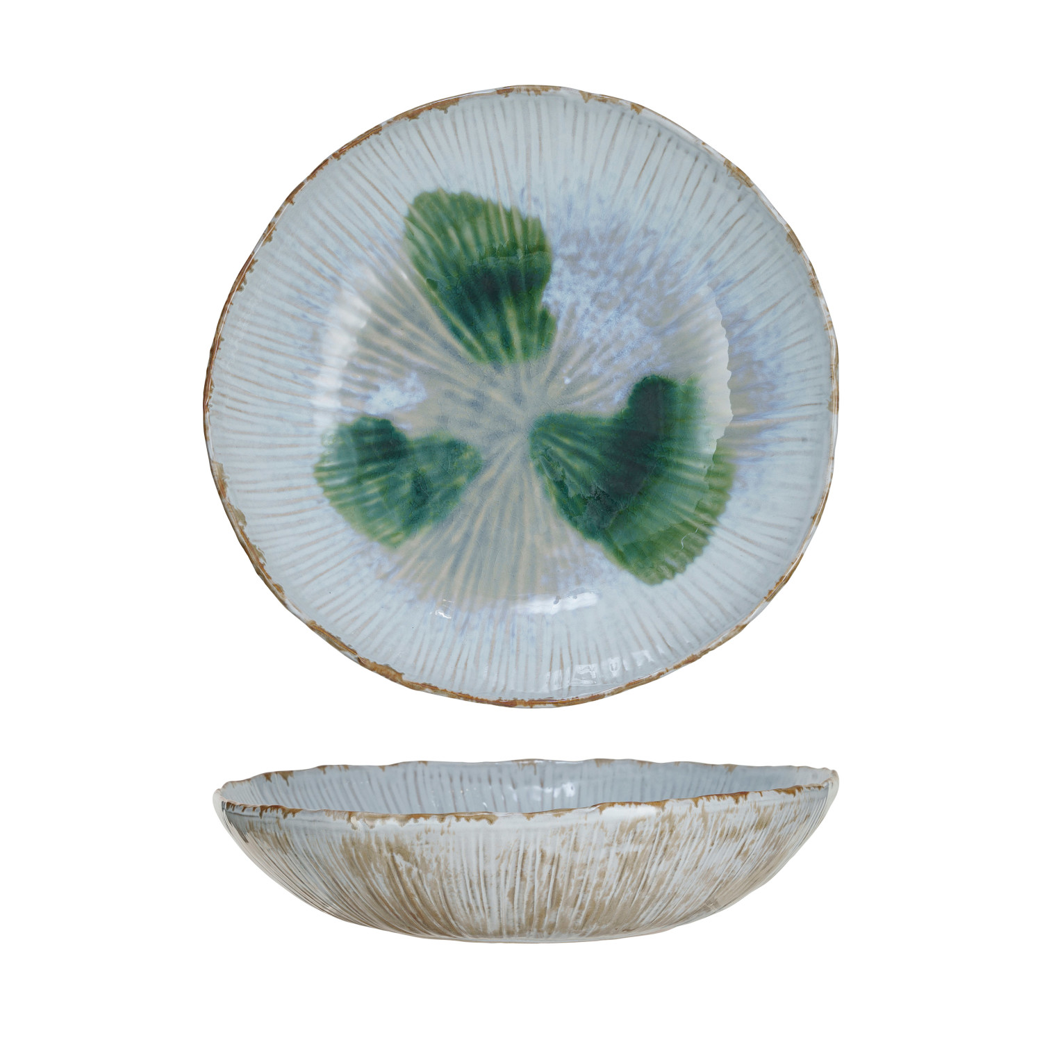 Catalog Name: 11-1/2" Round x 2-1/2"H Stoneware Bowl, Reactive Crackle Glaze, Multi Color (Each One Will Vary)
