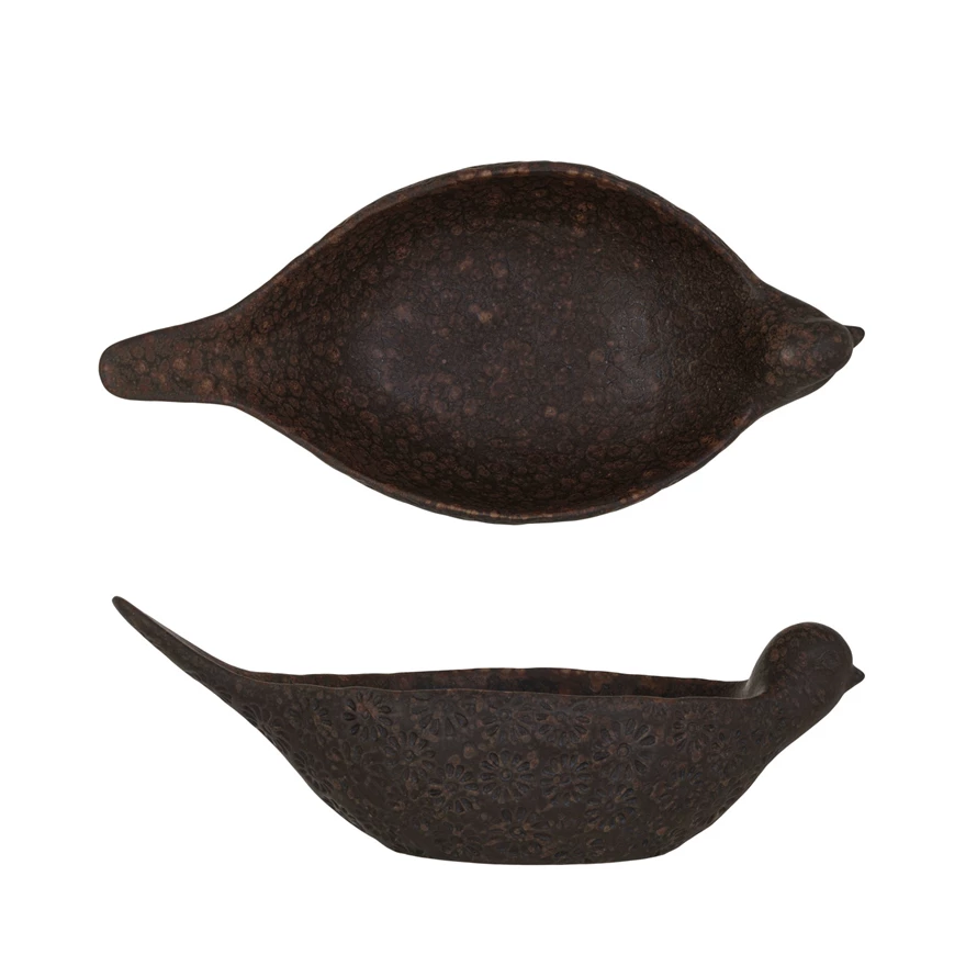 Catalog Name: 10"L x 4-3/4"W x 3-1/4"H Debossed Stoneware Bird Bowl, Reactive Glaze, Brown (Each One Will Vary)