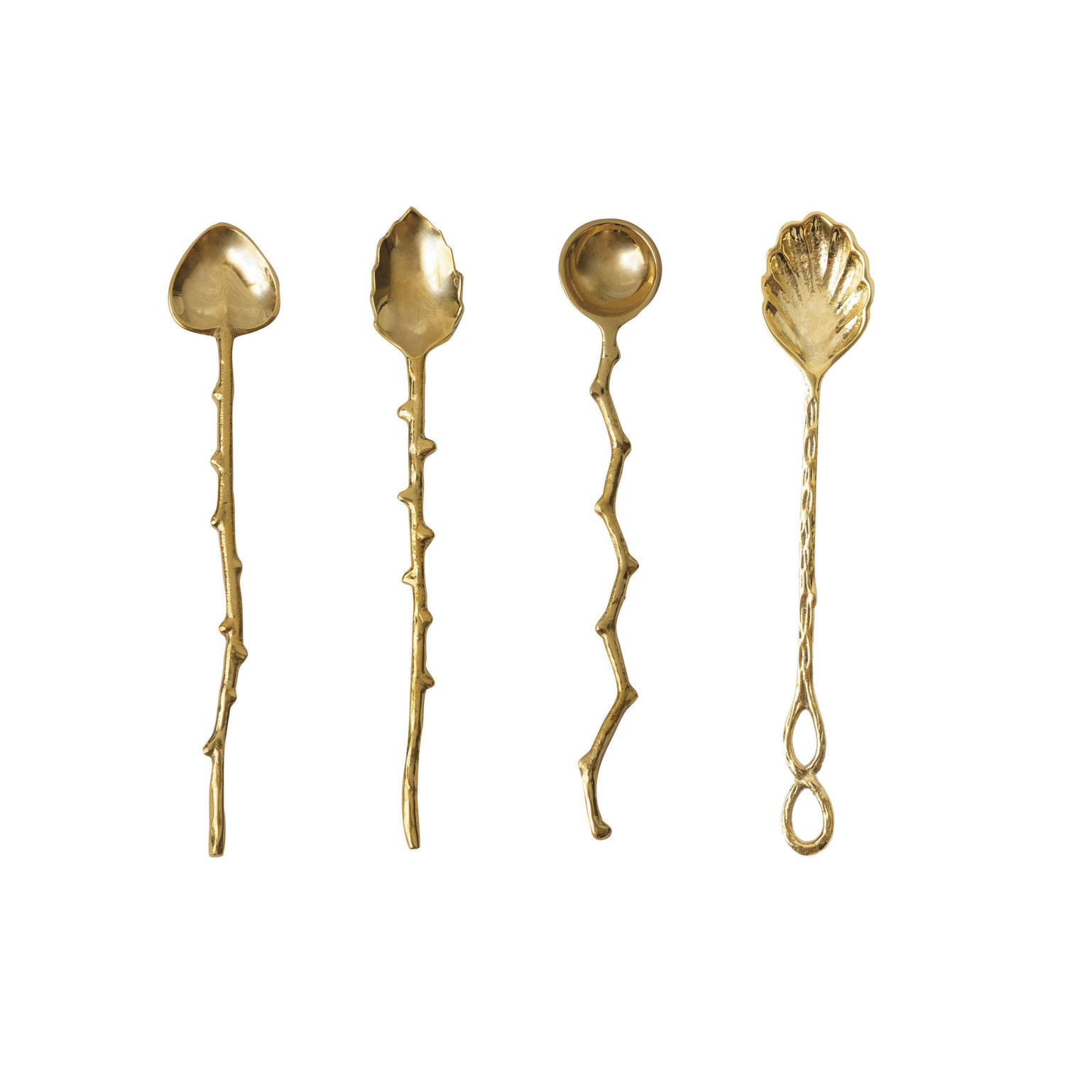 Catalog Name: 7-1/2"L Brass Spoon w/ Twig Shaped Handle, 4 Styles