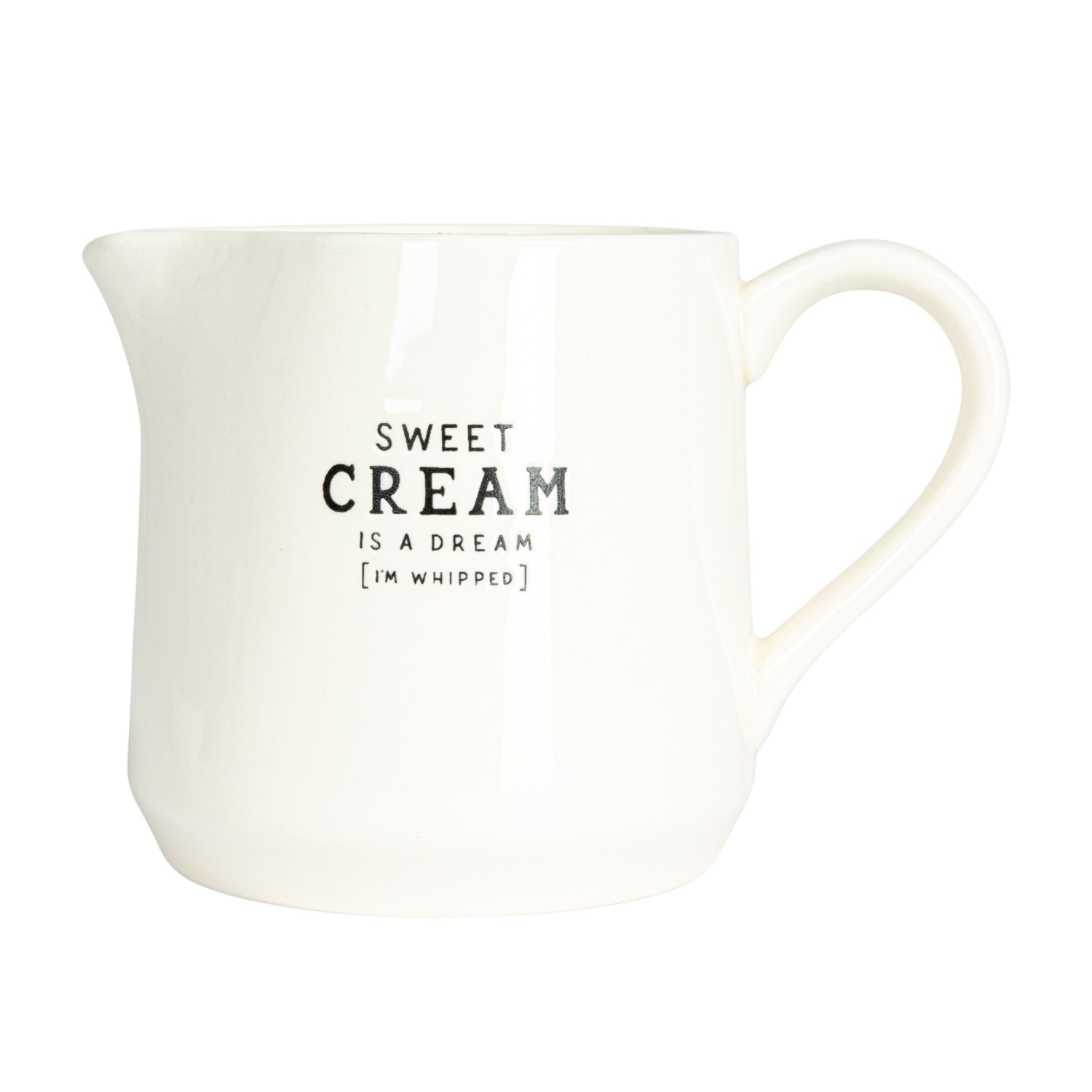 Catalog Name: 5-1/4"L x 3-3/4"W x 3-1/2"H 12 oz. Stoneware Creamer & 3-1/2" Round x 4-1/4"H 12 oz. Sugar Pot w/ Wax Relief Saying & Bamboo Spoon, White & Black, Set of 3 ©