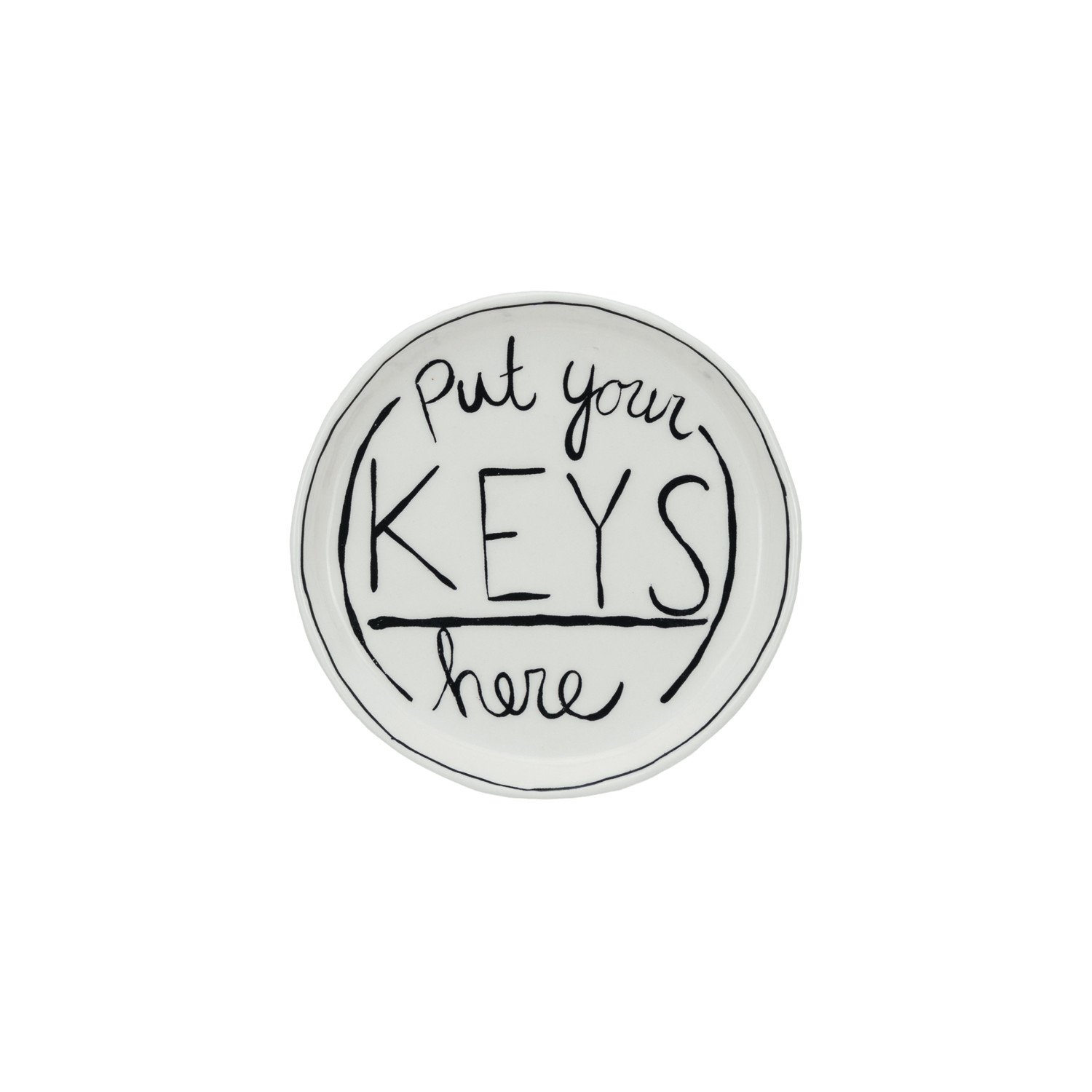 Catalog Name: 5" Round Stoneware Dish w/ Saying “Put Your Keys Here”, White & Black ©