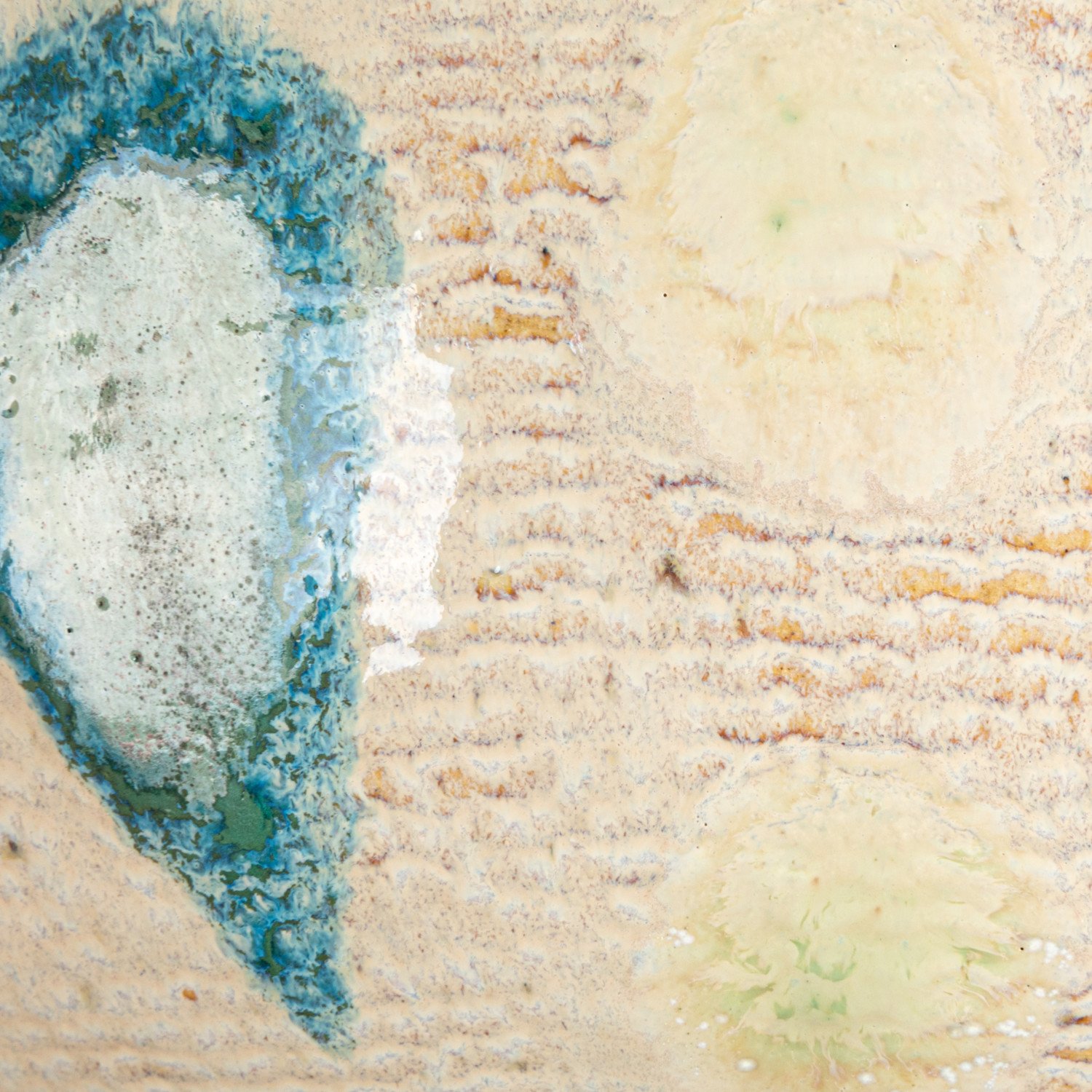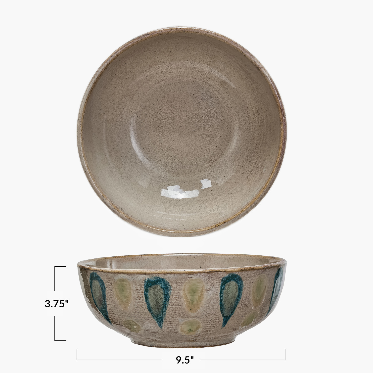 Catalog Name: 9-1/2" Round x 3-3/4"H Hand-Painted Stoneware Serving Bowl, Reactive Glaze, Green, Blue & Cream Color (Each One Will Vary)