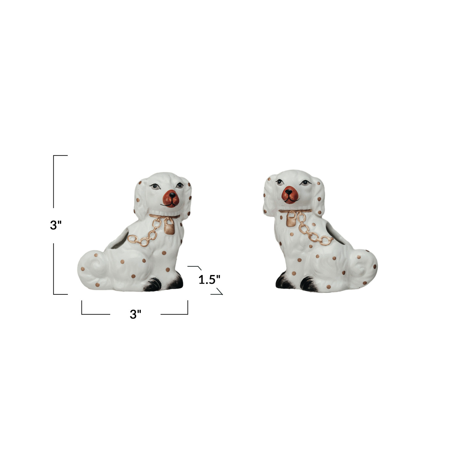 Catalog Name: 3"L x 1-1/2"W x 3"H Ceramic Staffordshire Dog Shaped Toothpick Holder w/ Gold Electroplating, Multi Color, 2 Styles